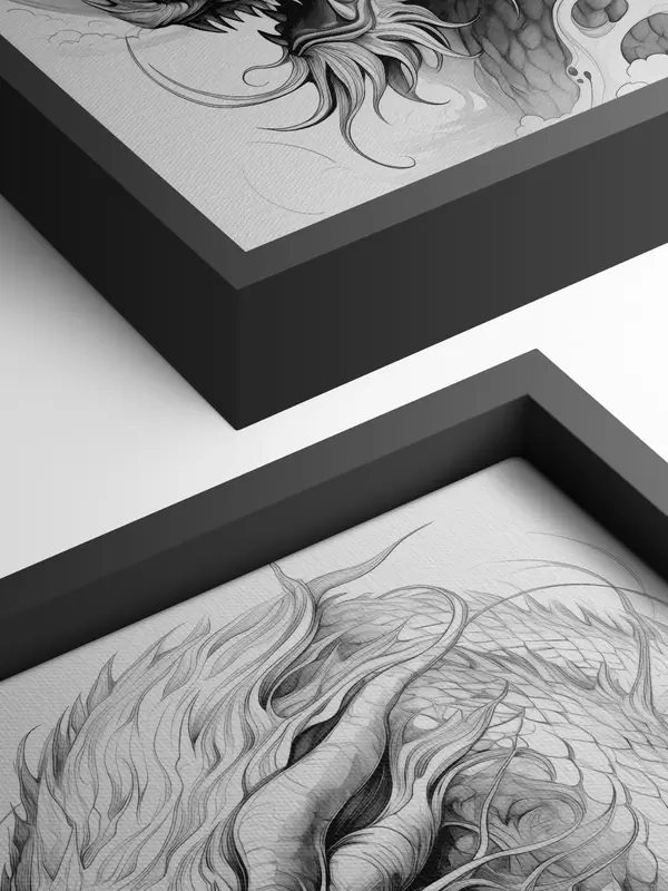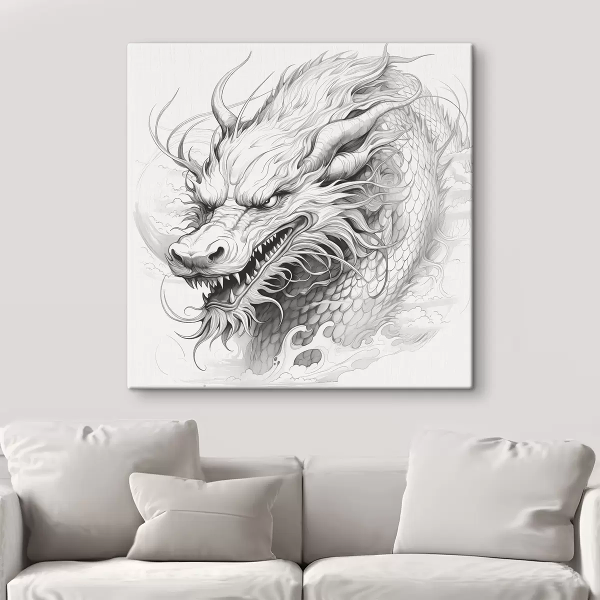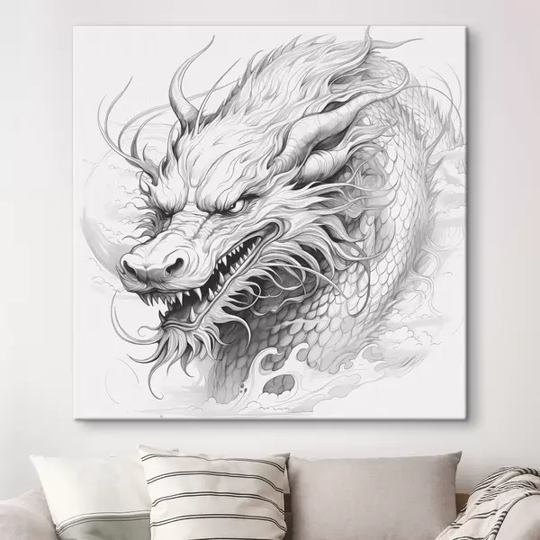 Maalid Hiina stiilis draakoni joonejoonistus mustvalge Nr s39563