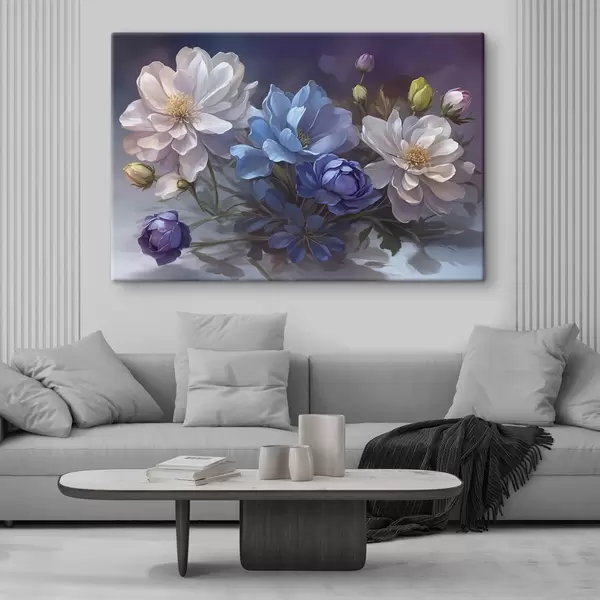 Maalid Valged ja sinised lilled ähmasel taustal Nr s39603