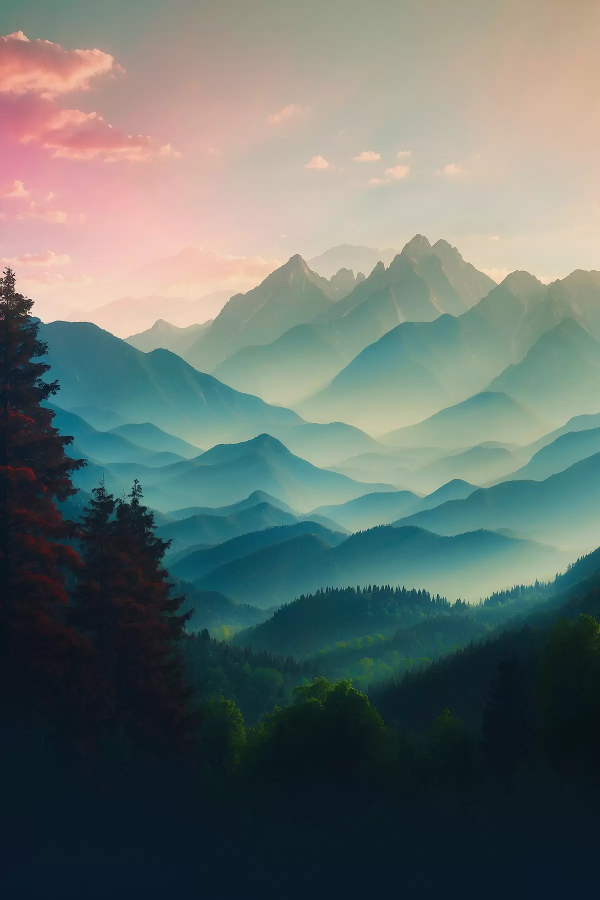 Maalid Mägede vaade päikesetõusul Nr s39607