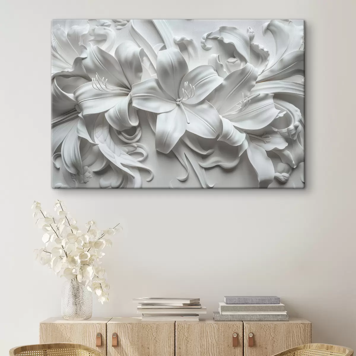 Maalid Valge 3D-reljeef skulptuursetest liiliatest Nr s39654