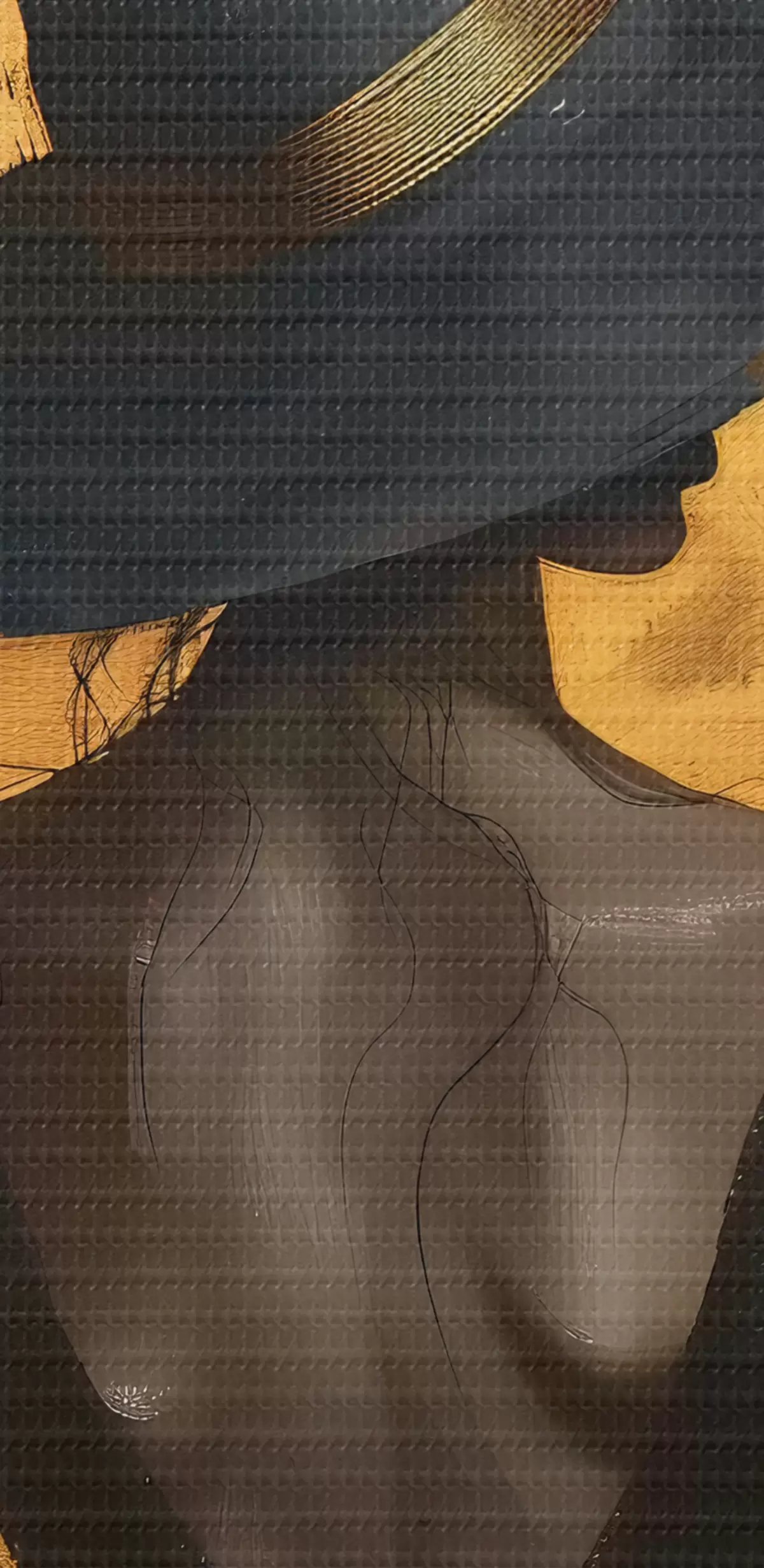 Selle lõuendi peenike niidipunus meenutab professionaalse kunstniku lõuendi pinda.
