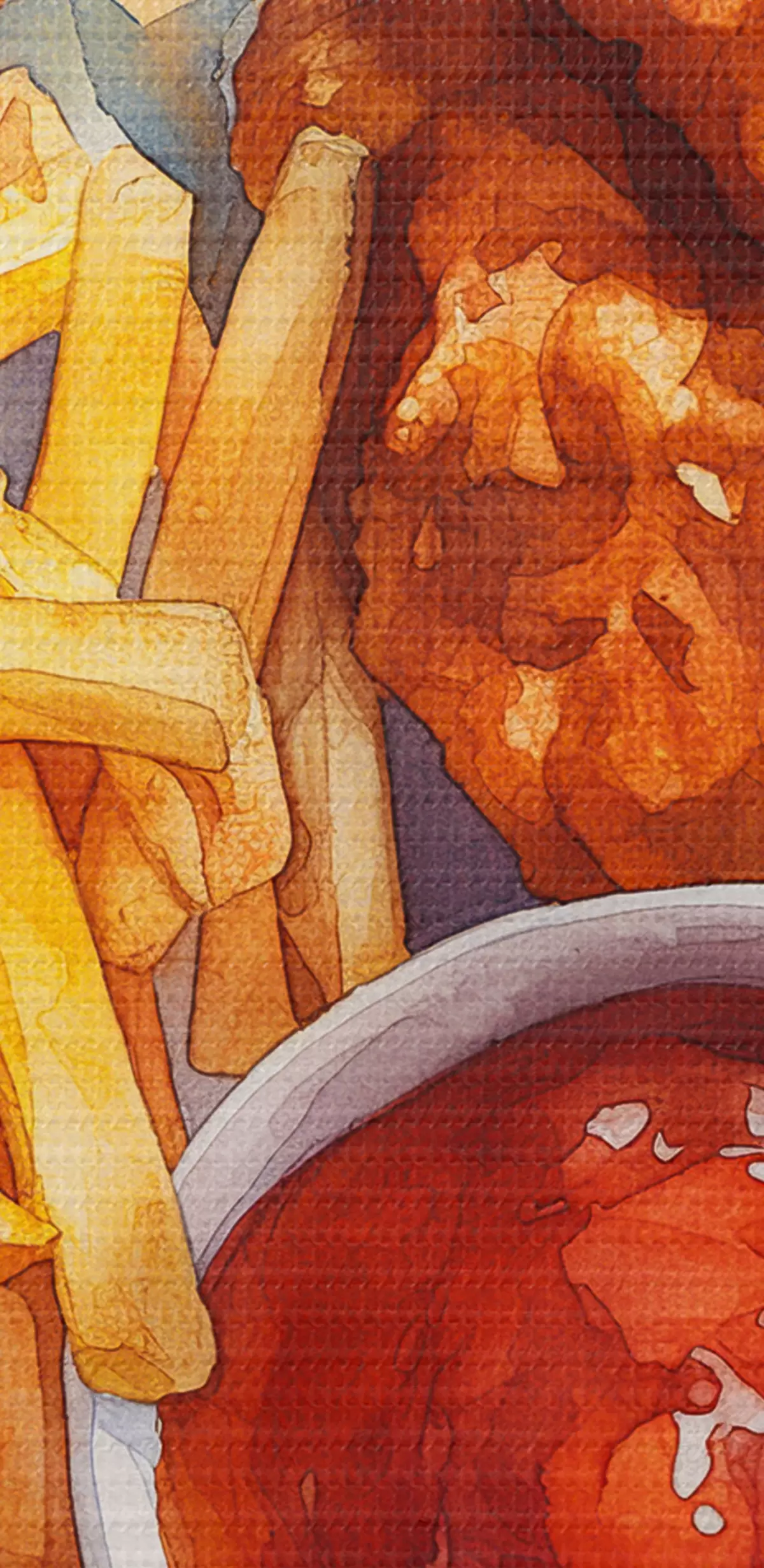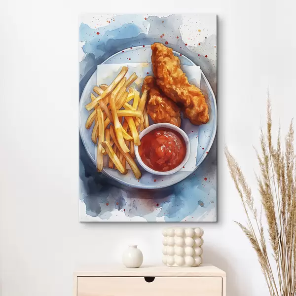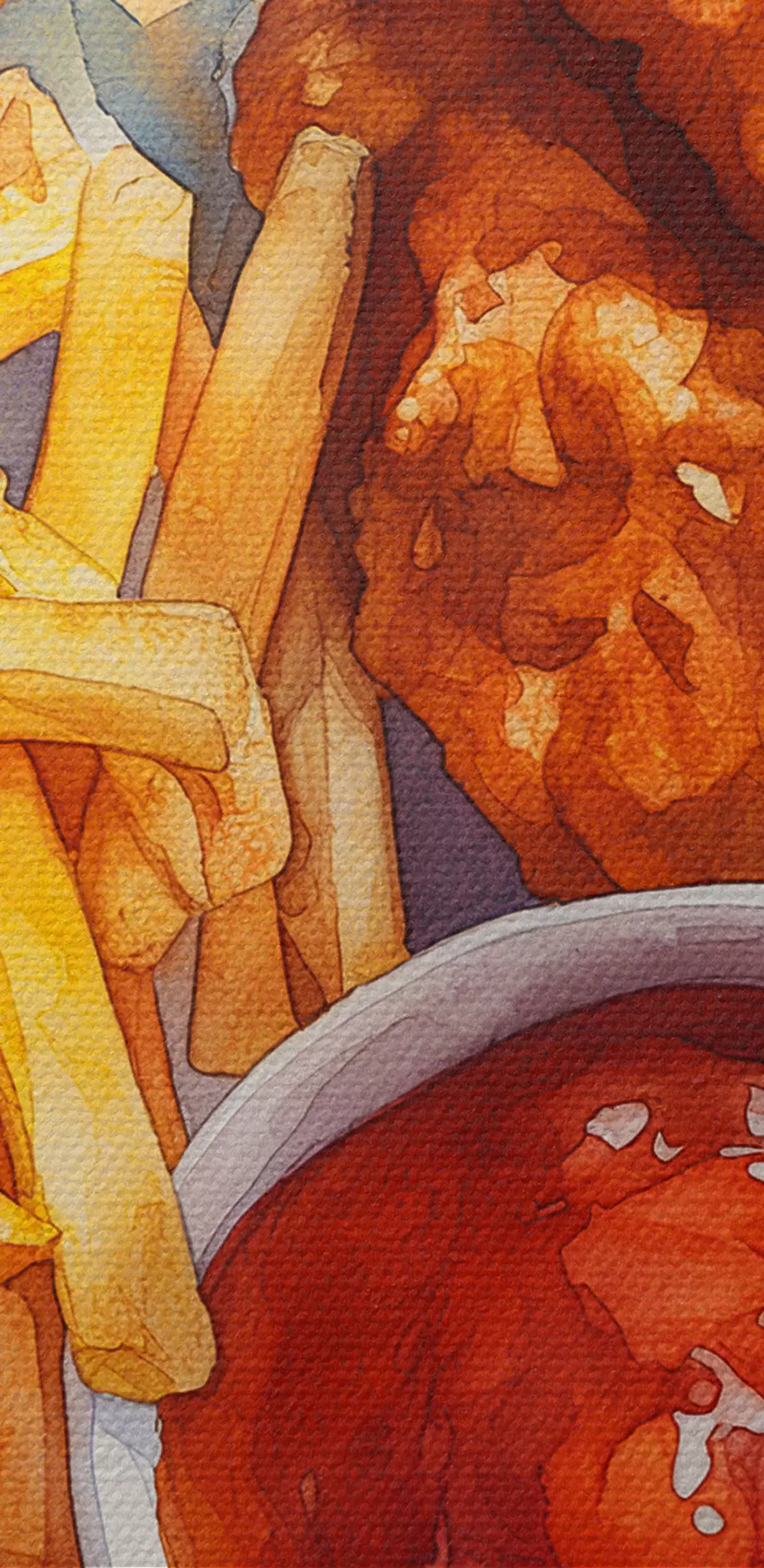 Maalid Akvarell tänavatoit, friikartulid röstitud kanaga, maitsev Nr s39709