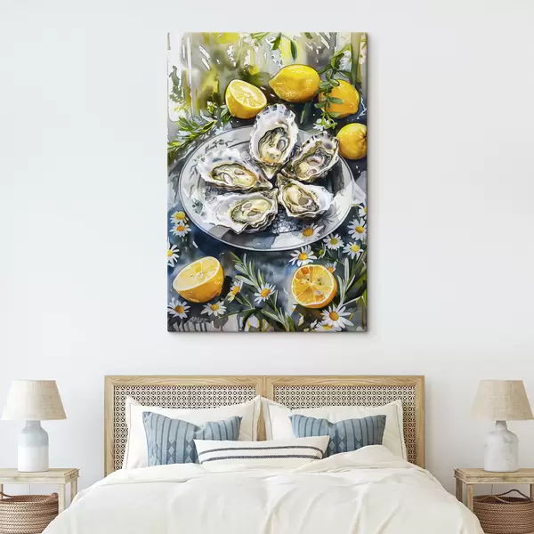 Maalid Elegantsed austrid taldrikul, sidrunid ja lilled, suvised värvid, vahemerelik Nr s39710
