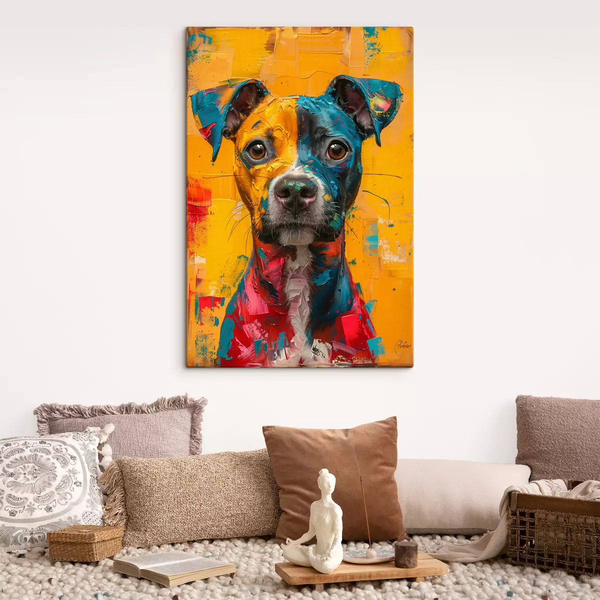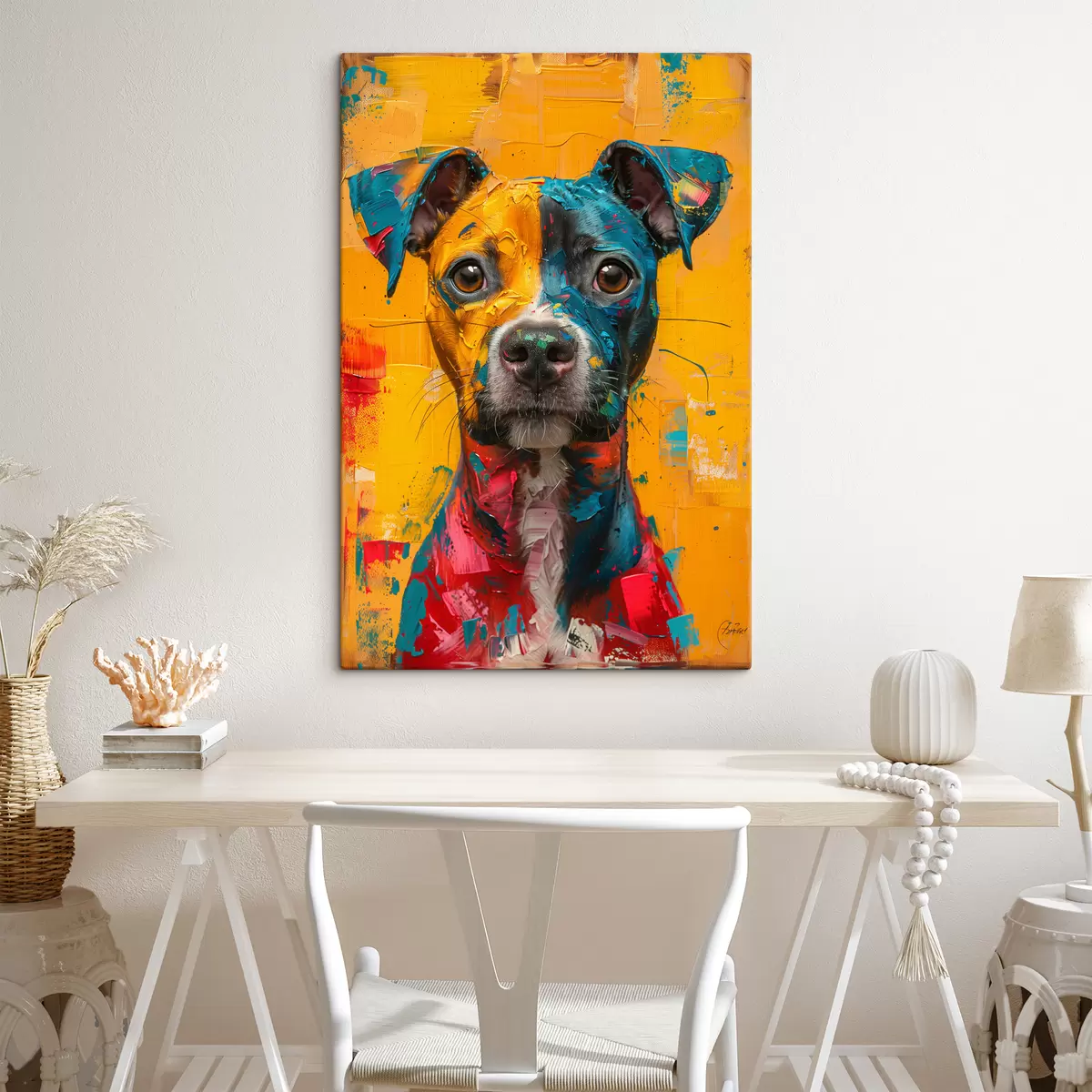 Maalid Kollaste ja siniste õlipintslitõmmetega Pitbulli portree Nr s39722