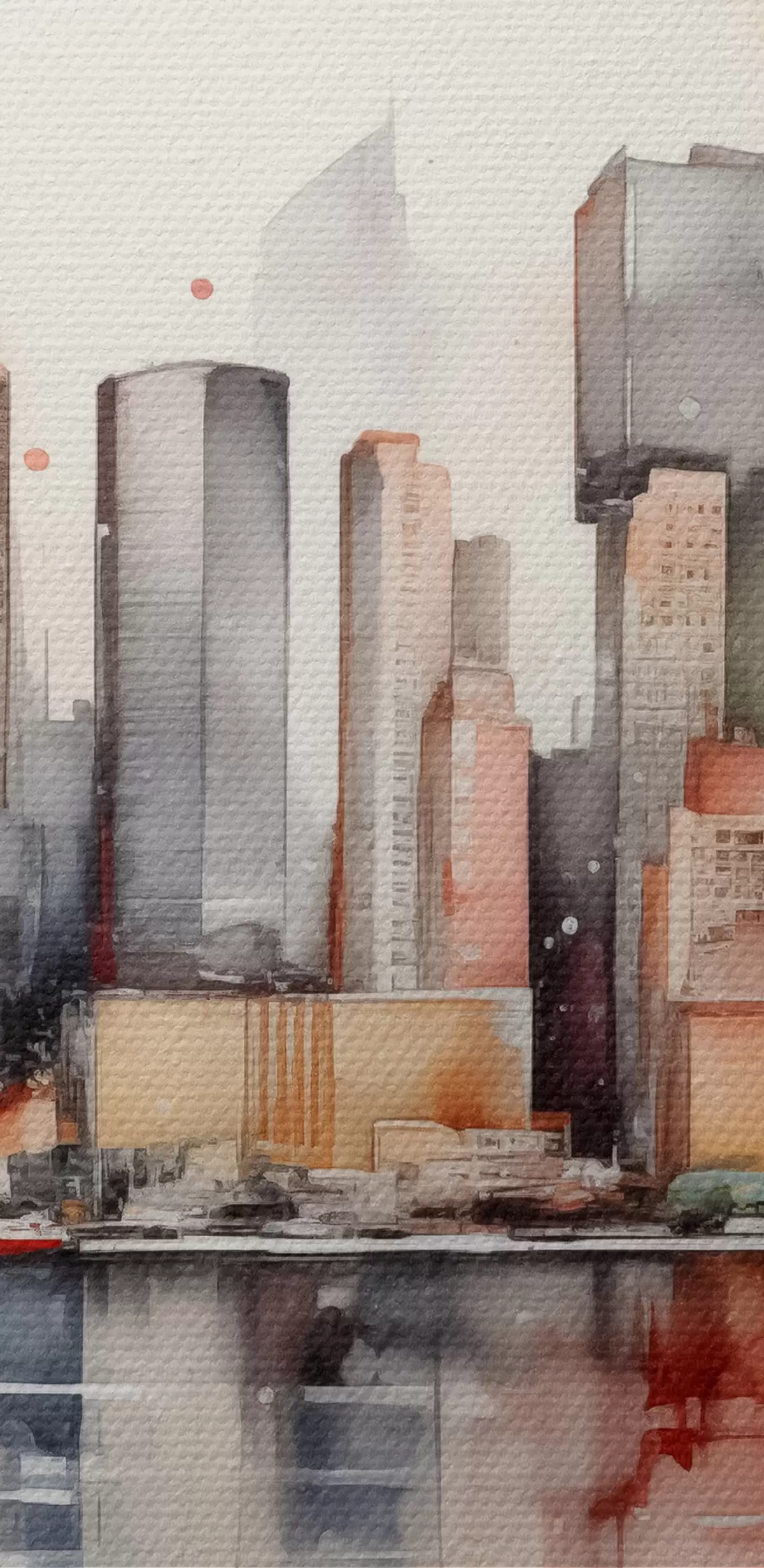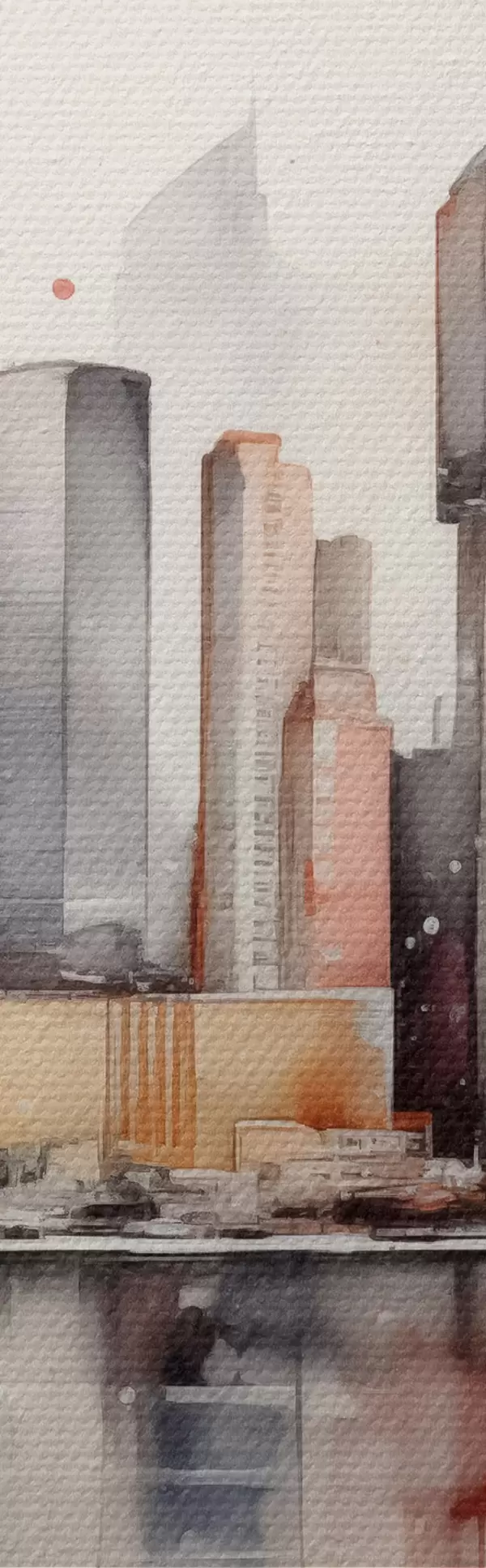 Maalid New Yorgi vaade, hoone siluetid, akvarell Nr s39828
