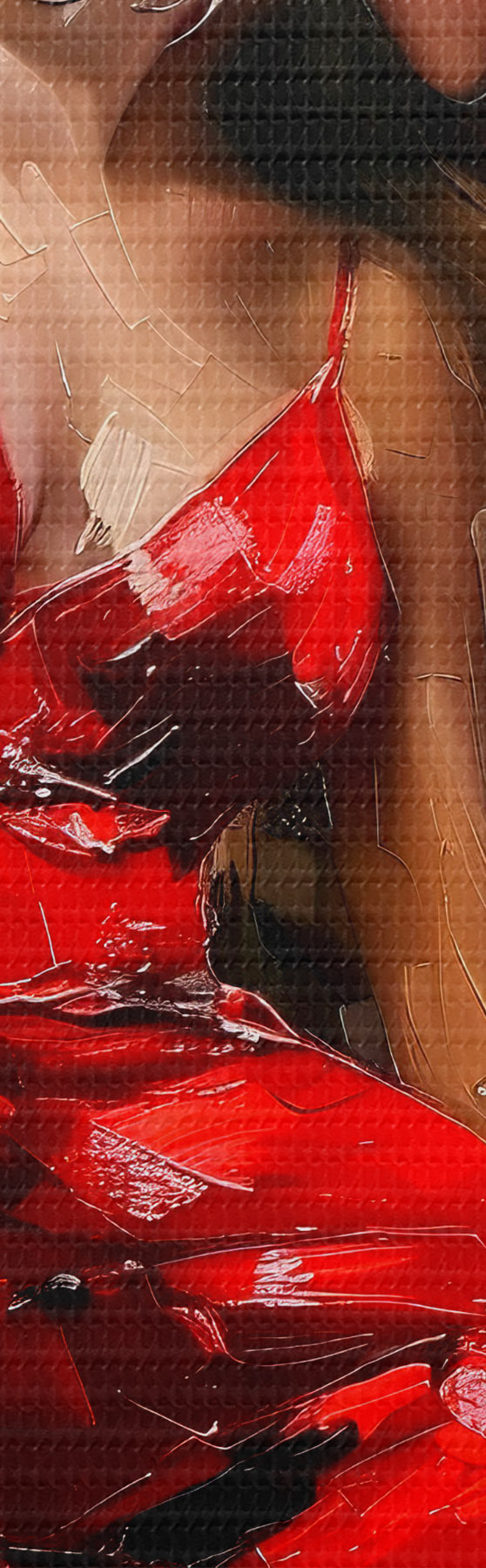 Selle lõuendi peenike niidipunus meenutab professionaalse kunstniku lõuendi pinda.