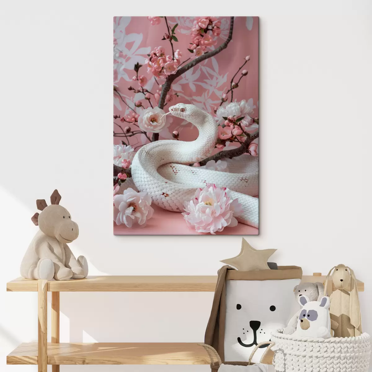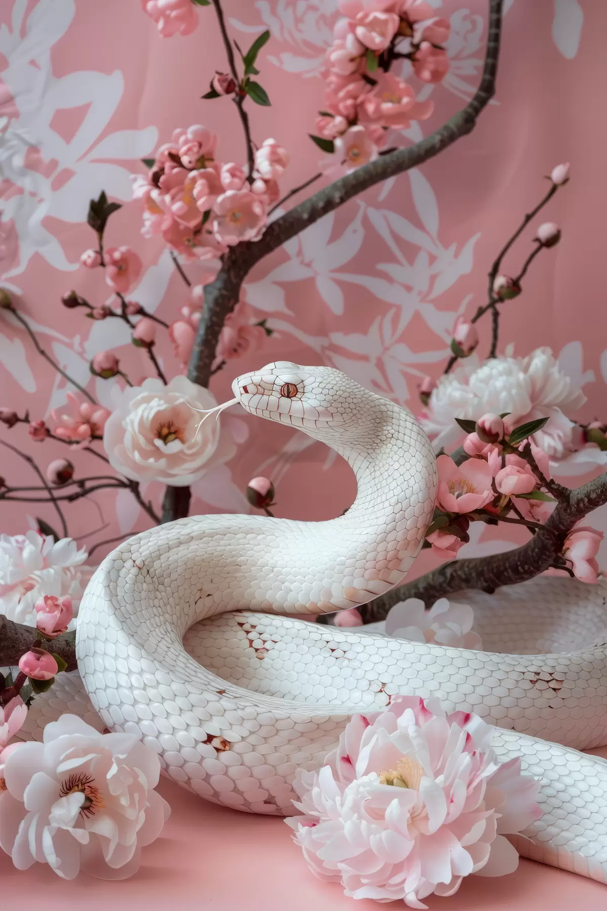 Maalid Valge madu ja roosad õied Nr s39941