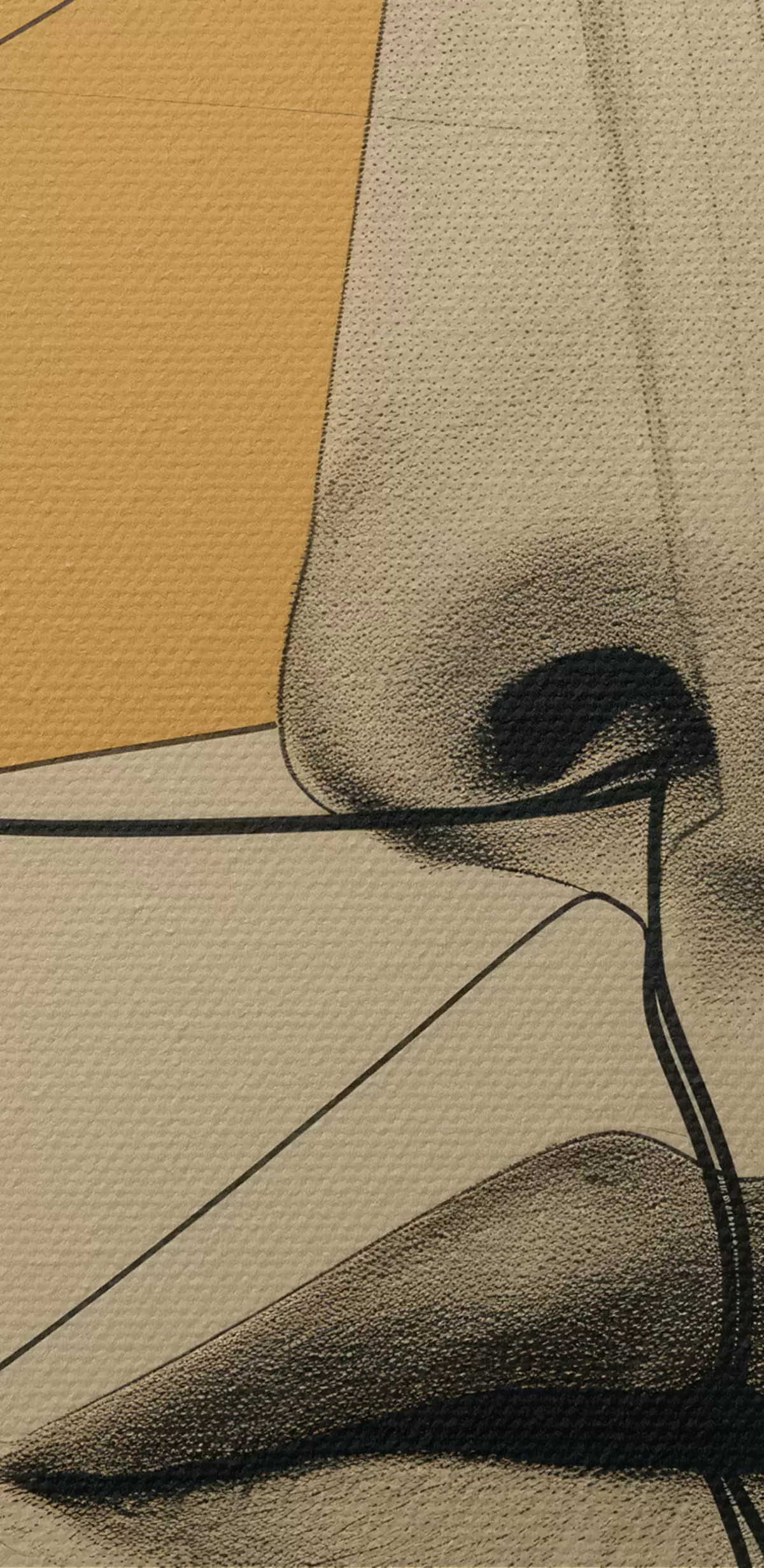 Selle lõuendi peenike niidipunus meenutab professionaalse kunstniku lõuendi pinda.
