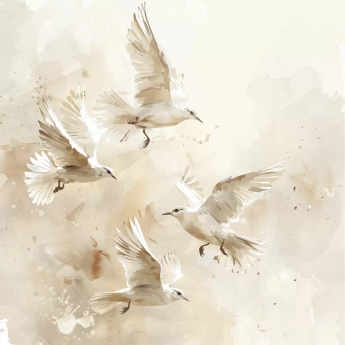 Maalid Akvarell lendavad linnud, pehmed pastellvärvid, abstraktsioon Nr s39973