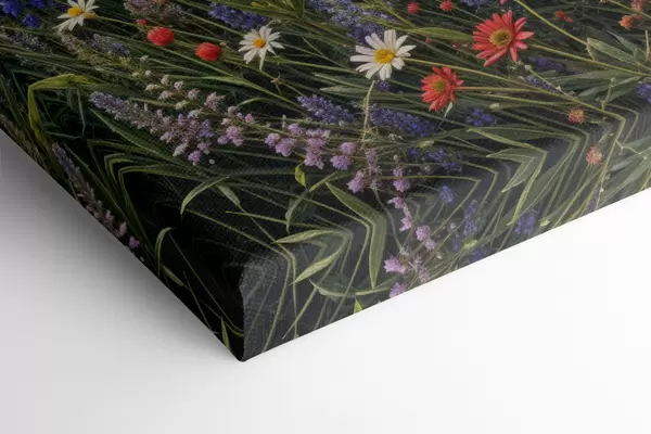 Maalid Lopsakas maamaastik pilvise taeva all elava värviliste lilledega täidetud metslilleniiduga Nr s40018