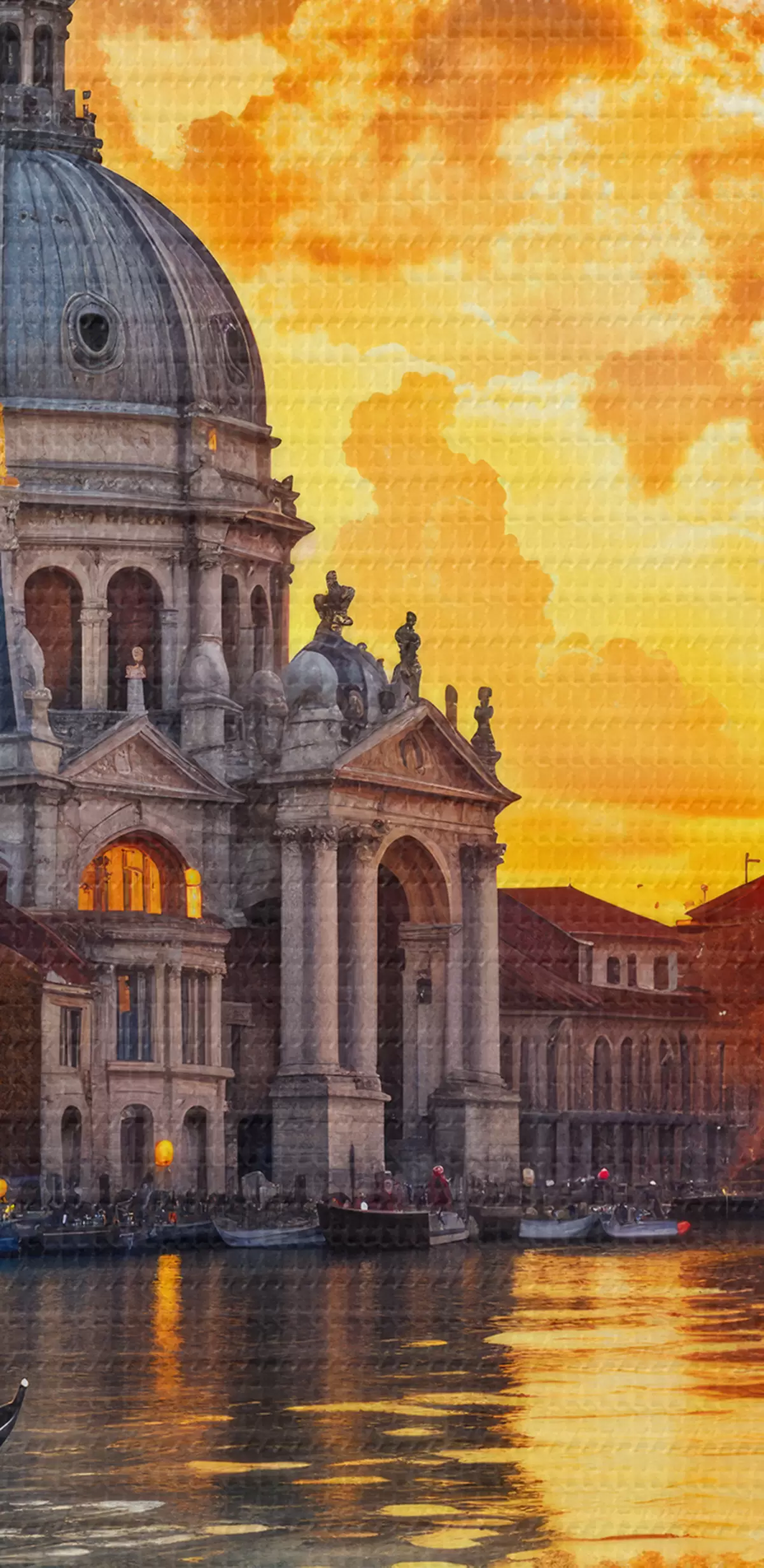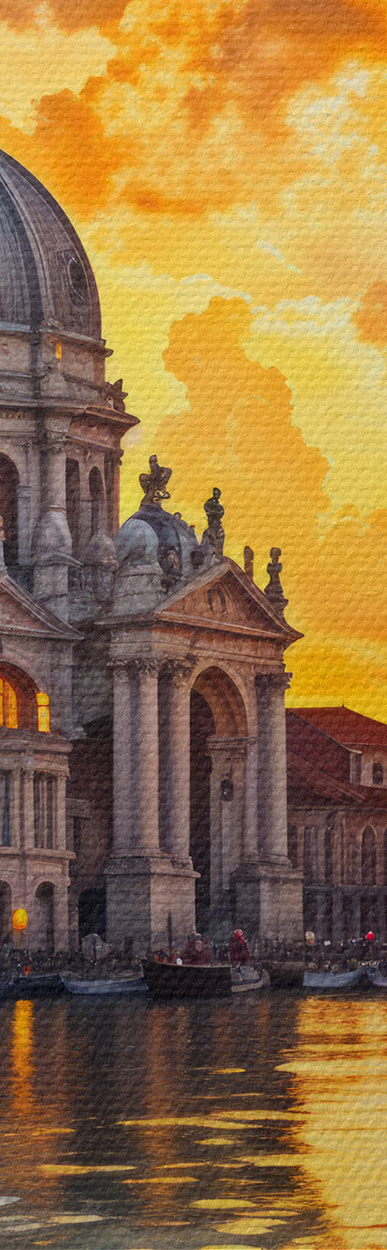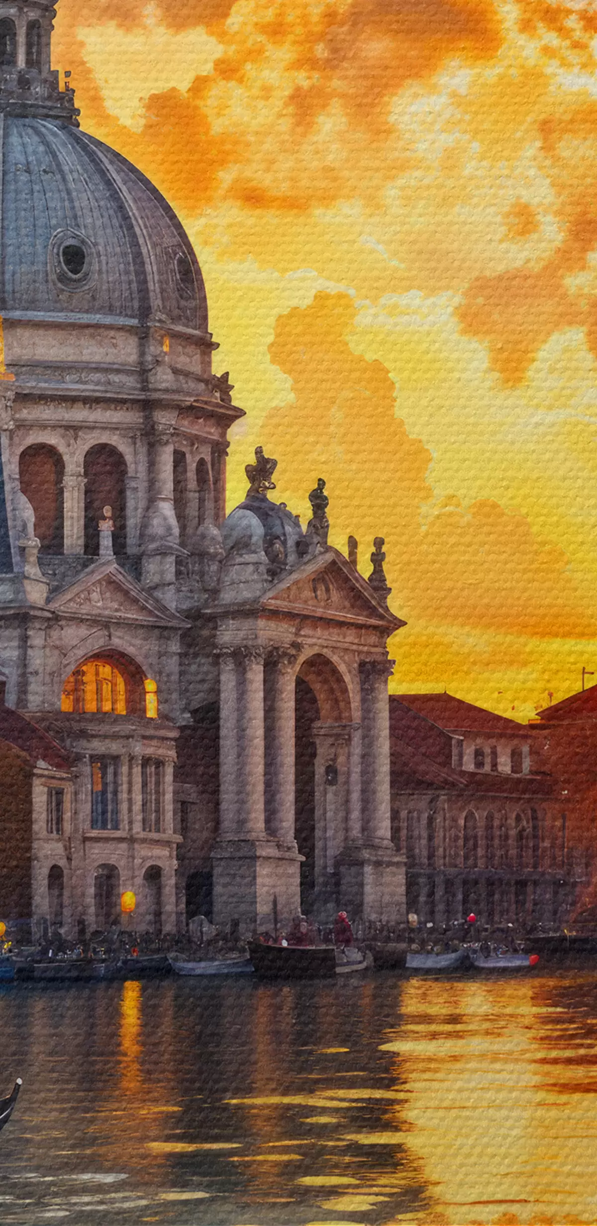 Maalid Värvikas ja dramaatiline päikeseloojang Suure kanali kohal Veneetsias, Itaalias akvarellikunst Nr s40027