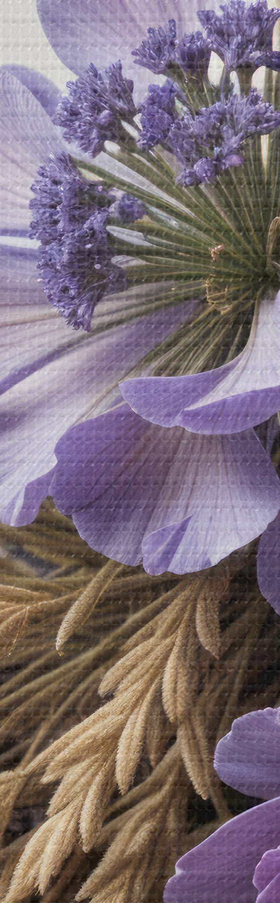Maalid Lillade lillede kimp, sealhulgas pojengid ja lavendel, heledal taustal nisuvarred Nr s40030