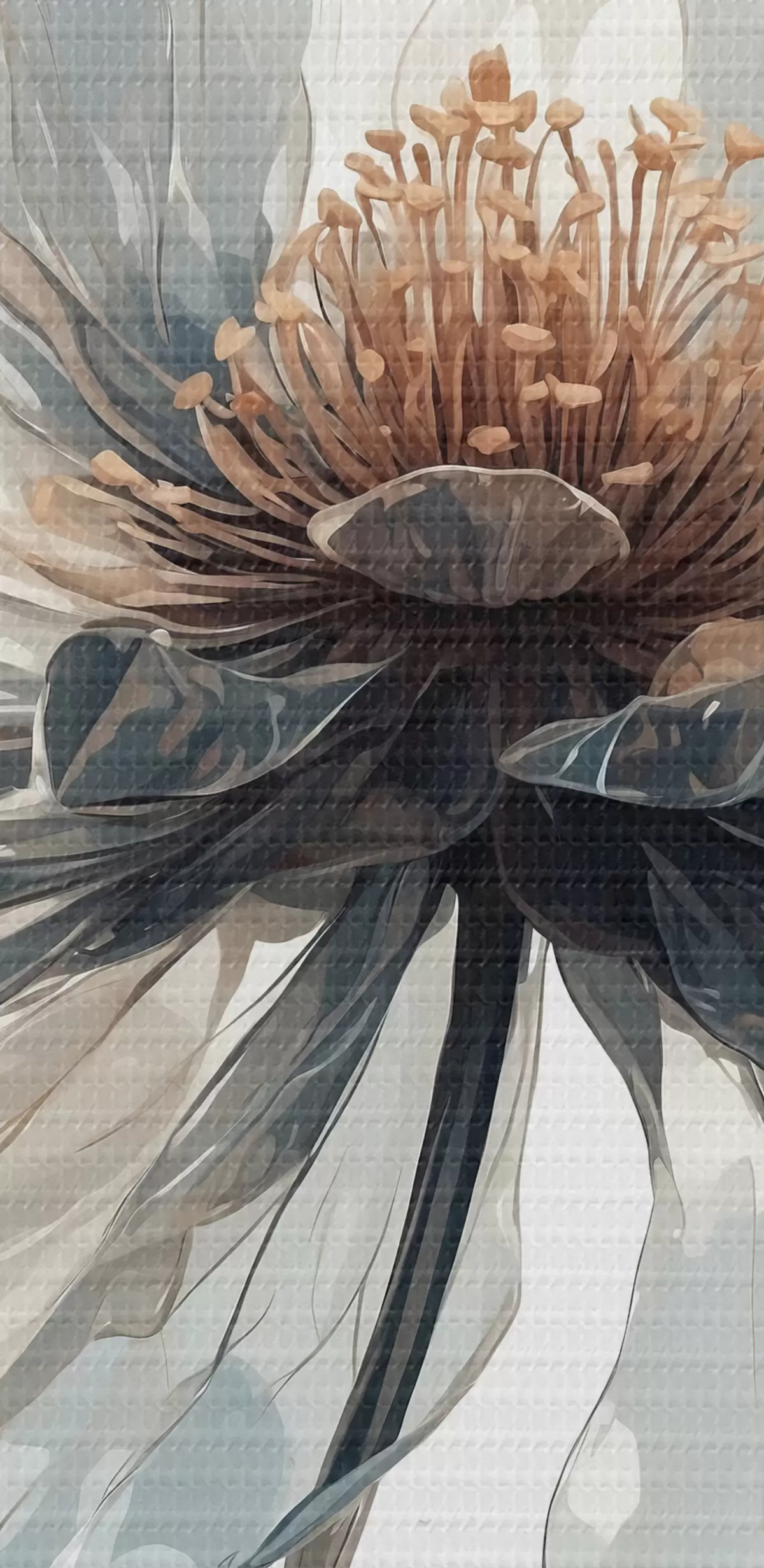 Selle lõuendi peenike niidipunus meenutab professionaalse kunstniku lõuendi pinda.