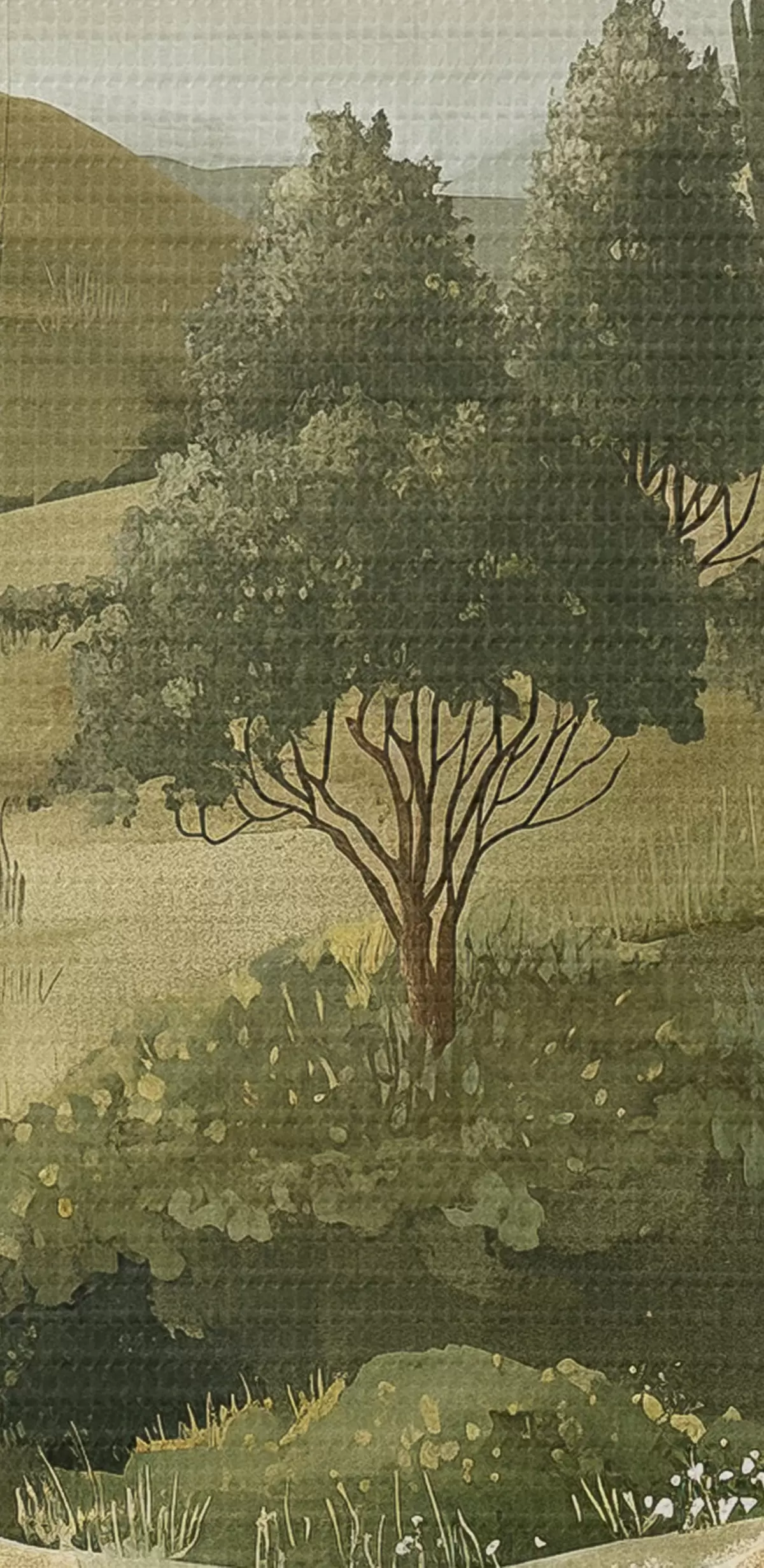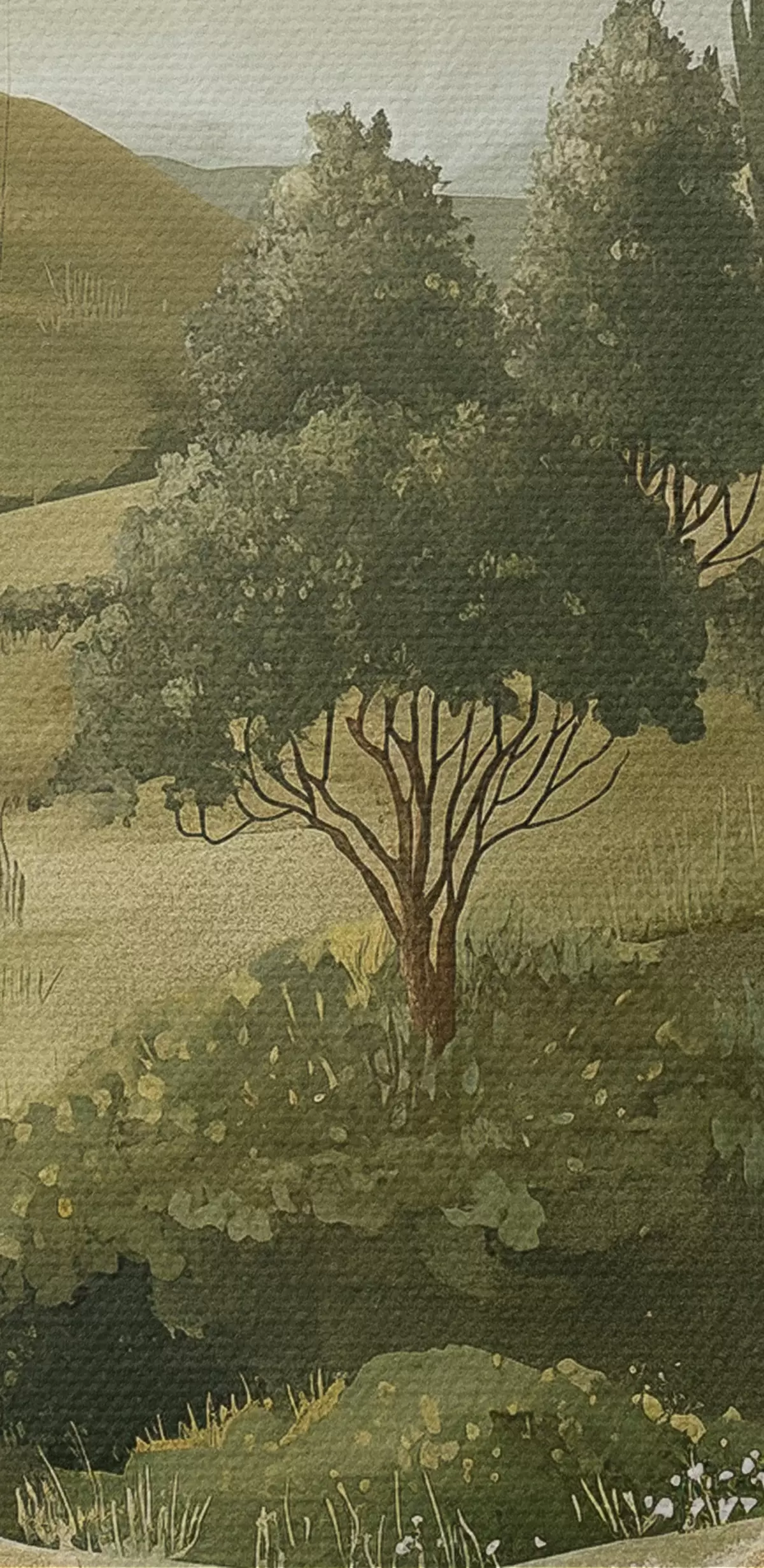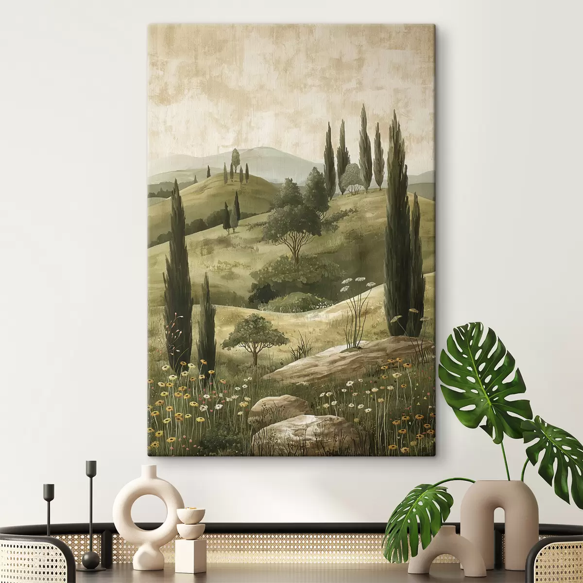 Maalid Vintage maastik, maalähedane stiil, pastelsed värvid, lillede ja puudega heinamaa Nr s40081