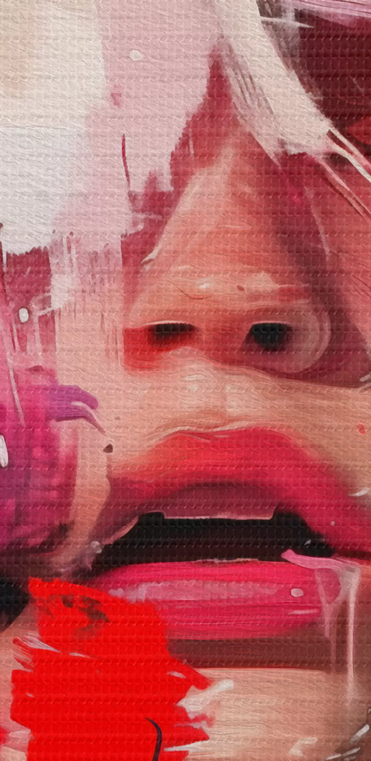Selle lõuendi peenike niidipunus meenutab professionaalse kunstniku lõuendi pinda.