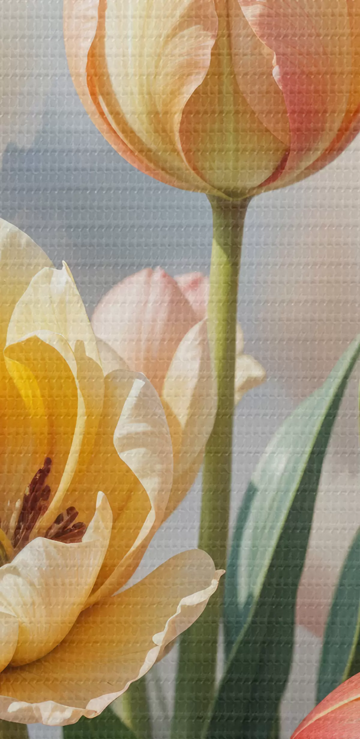 Maalid Värvilised tulbid heledal taustal punase, oranži ja kollase erinevates toonides Nr s40167