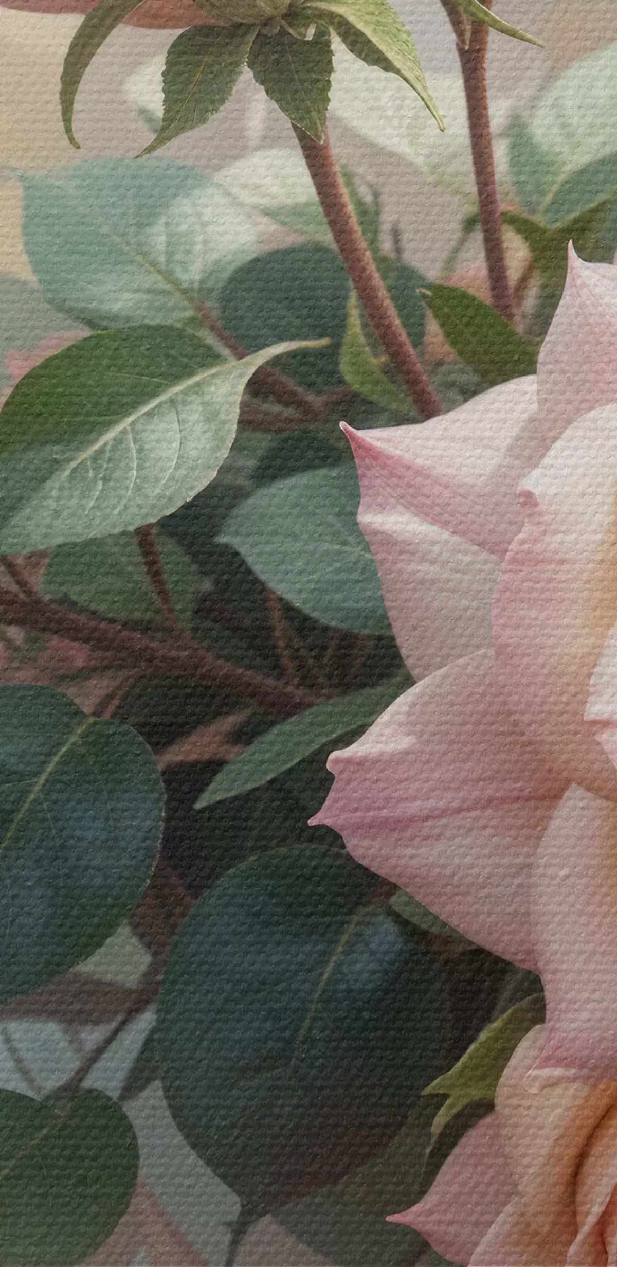 Pilt Roheliste lehtedega kaunite roosade rooside kimp pehmel udusel taustal s40168