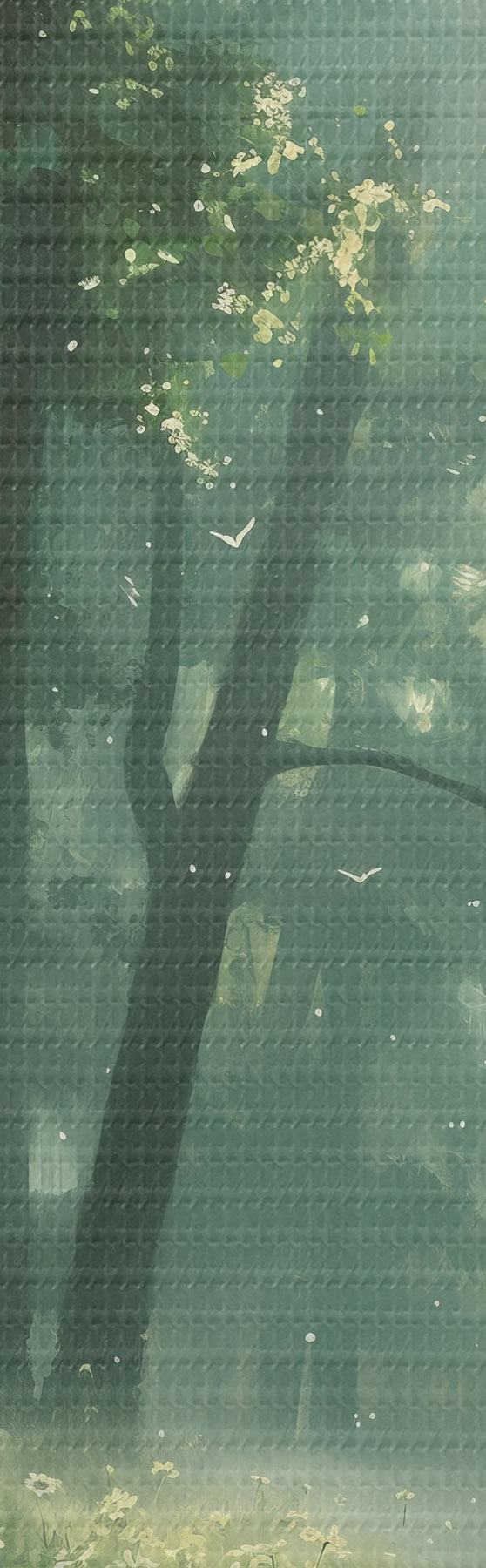Selle lõuendi peenike niidipunus meenutab professionaalse kunstniku lõuendi pinda.