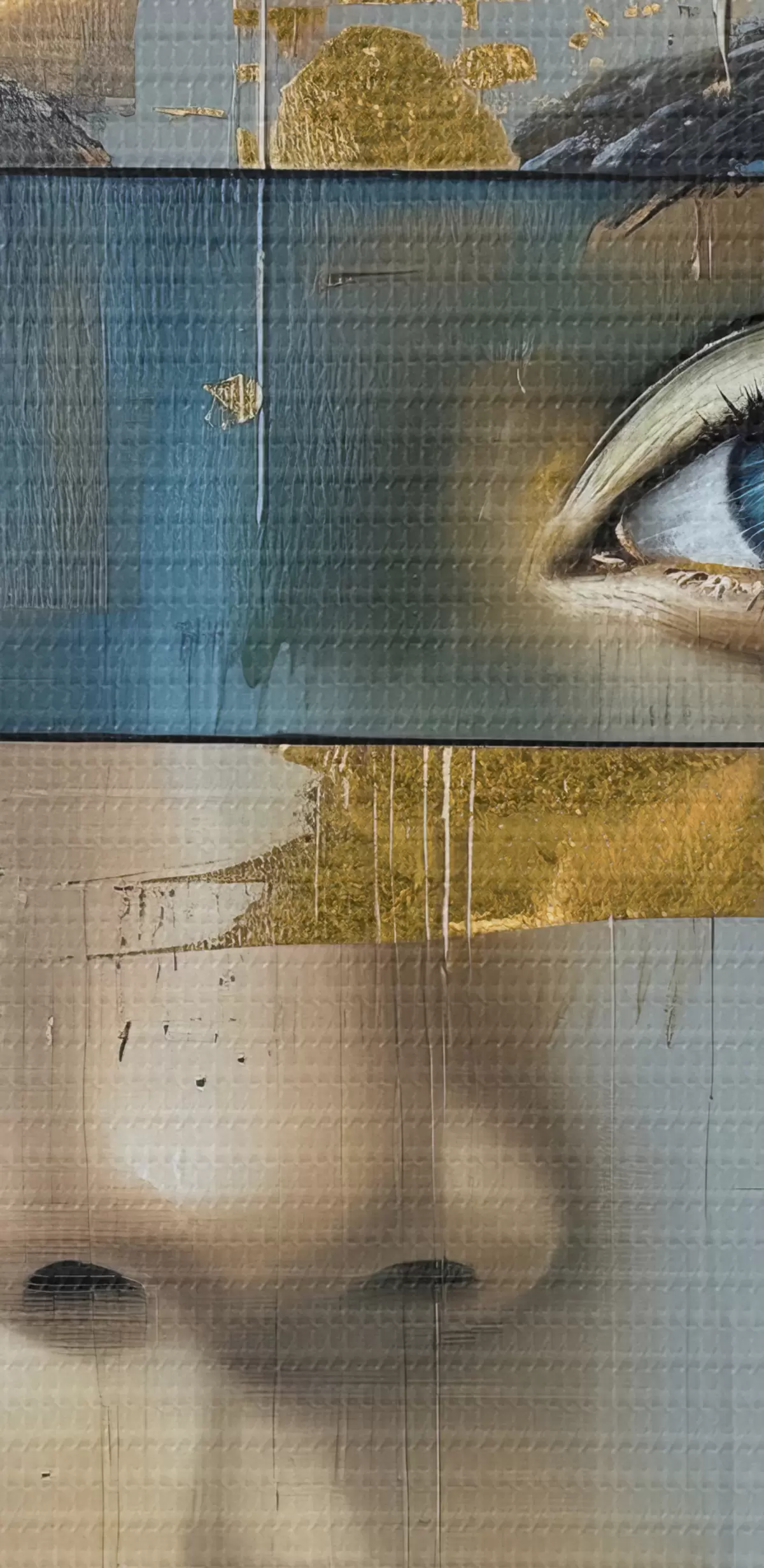 Selle lõuendi peenike niidipunus meenutab professionaalse kunstniku lõuendi pinda.