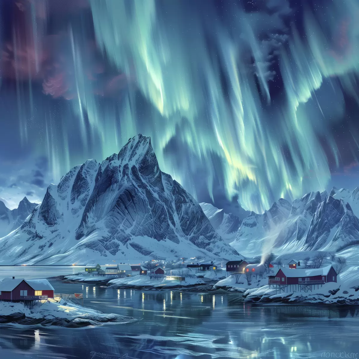 Maalid Maagilised tuled, talveküla Norras Nr s40301