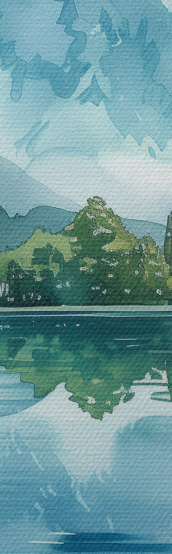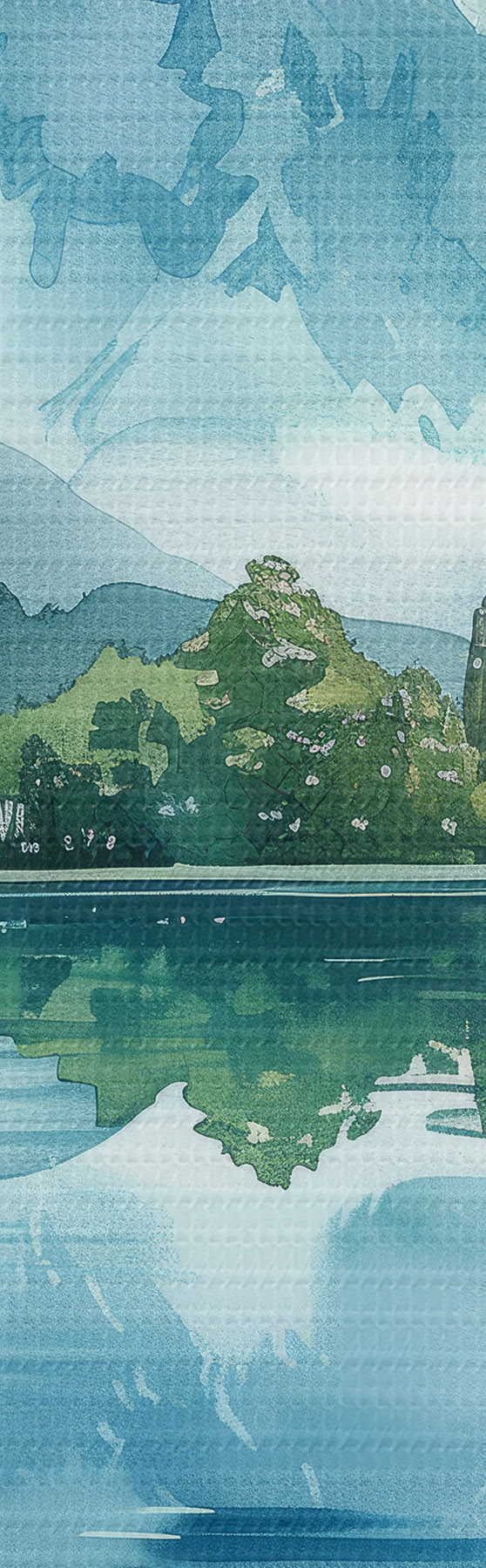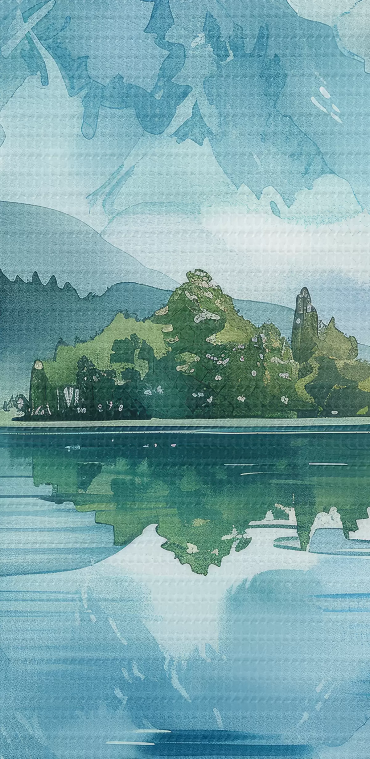 Maalid Akvarell mägede maastik, jõgi, roheline ja sinine värvid Nr s40310