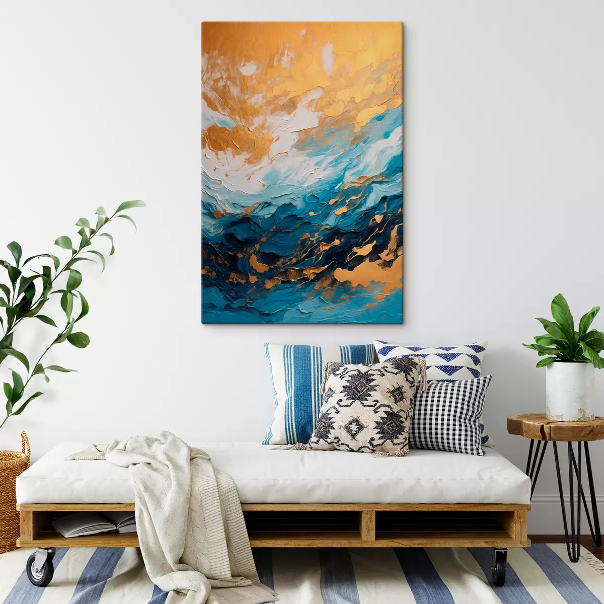 Maali võib riputada kohe pärast selle kättesaamist. Maal on pingutatud 2 cm laiusele puidust kandikule.