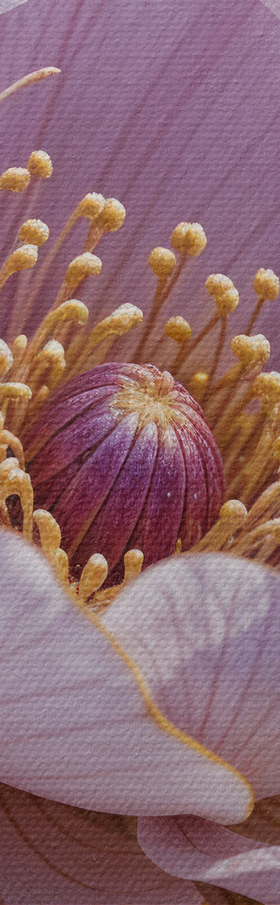 Maalid Lähivõte suurest kahvaturoosast pojengiõiest, millel on õrnad kroonlehed ja erekollane keskosa Nr s40384
