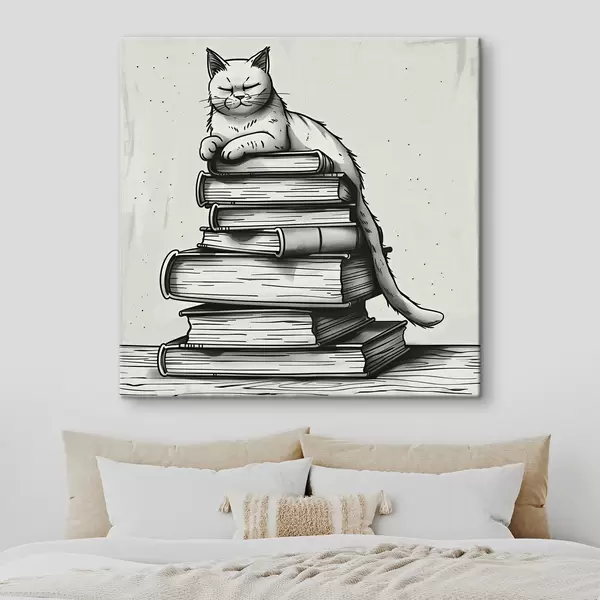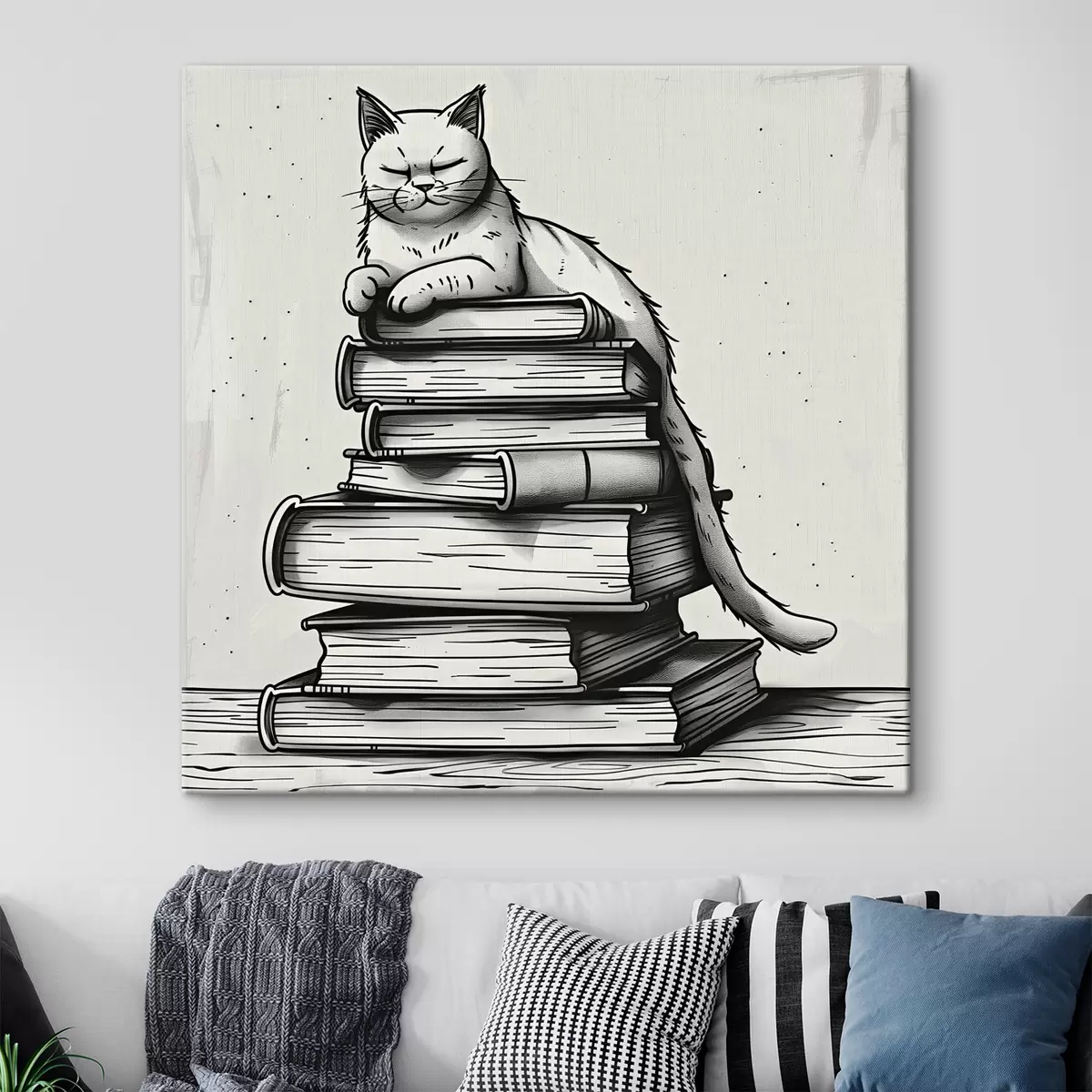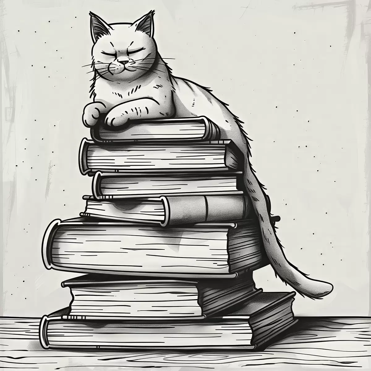Maalid Mustvalge kass raamatuvirnal Nr s40435