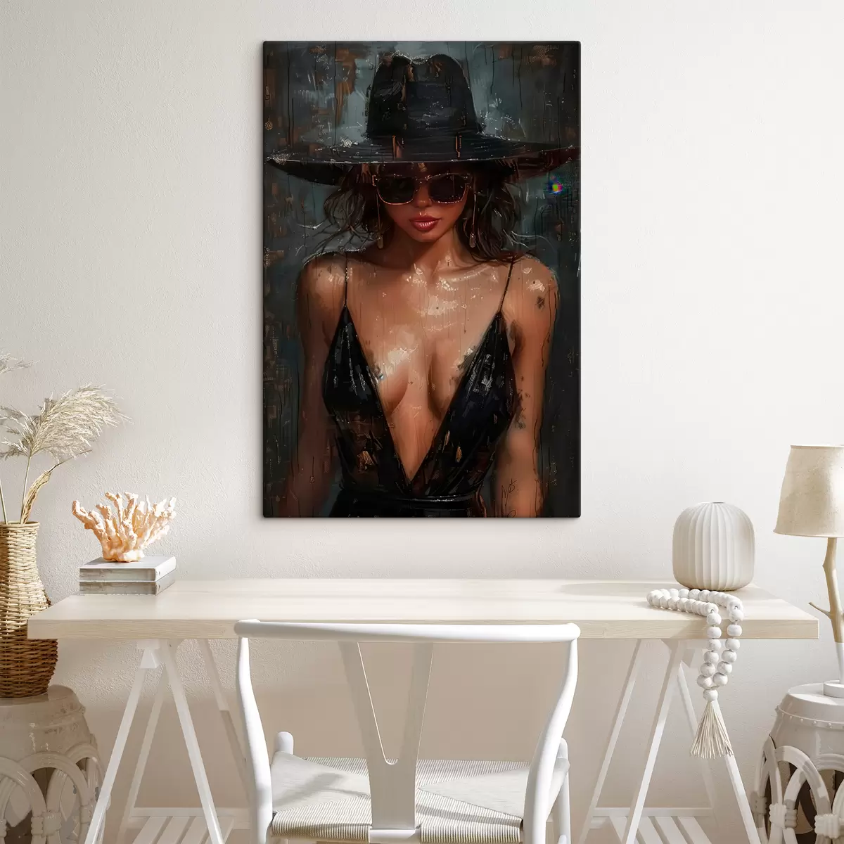 Maalid Tüdruk musta kleidi ja musta mütsiga Nr s40441