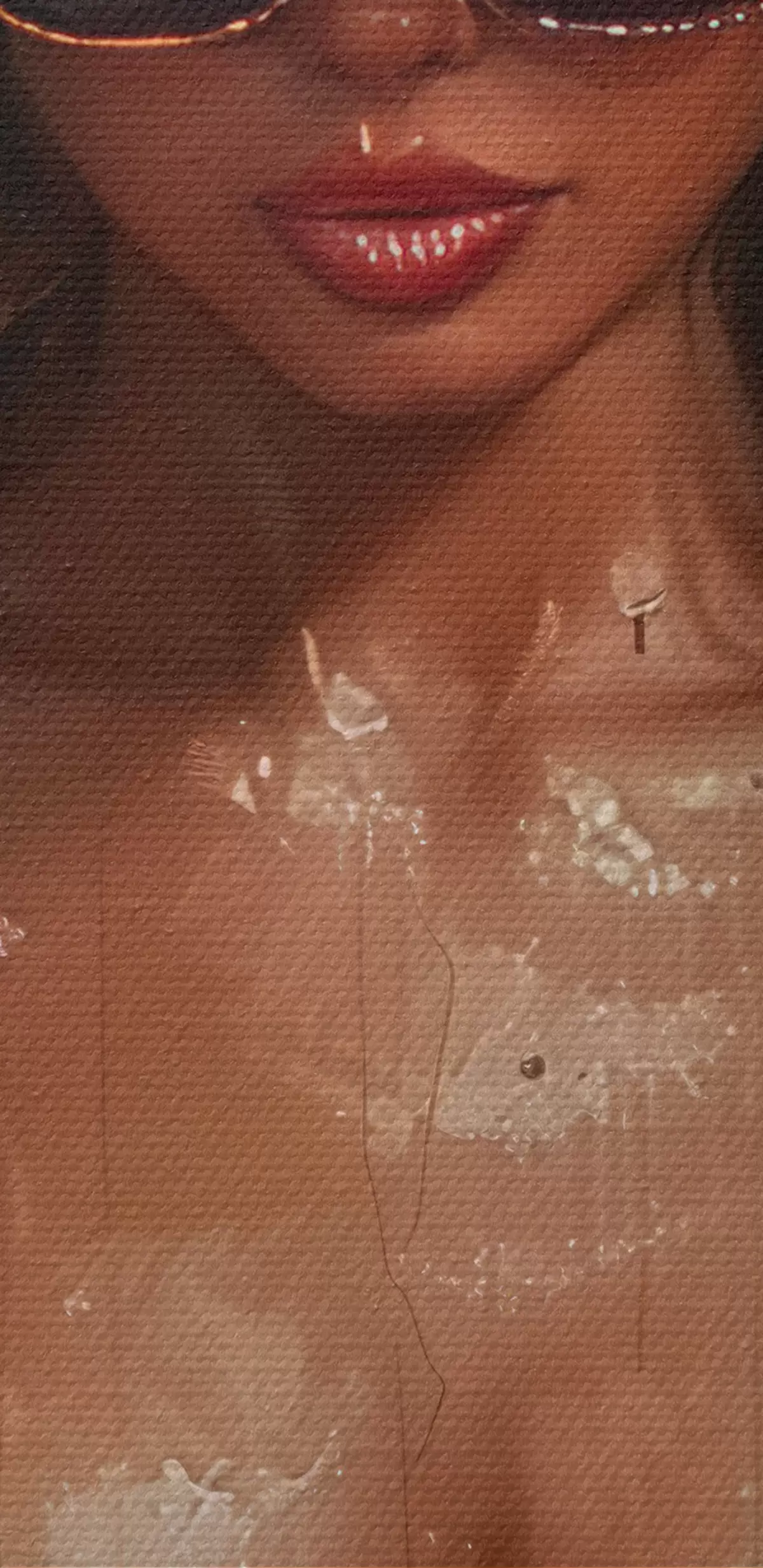 Selle lõuendi peenike niidipunus meenutab professionaalse kunstniku lõuendi pinda.