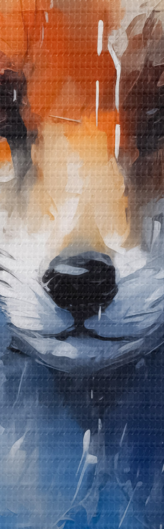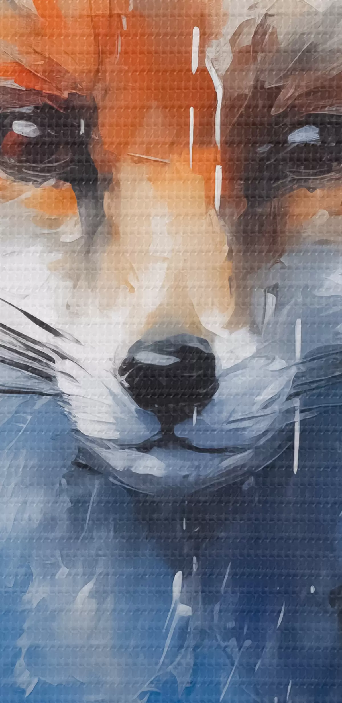 Selle lõuendi peenike niidipunus meenutab professionaalse kunstniku lõuendi pinda.