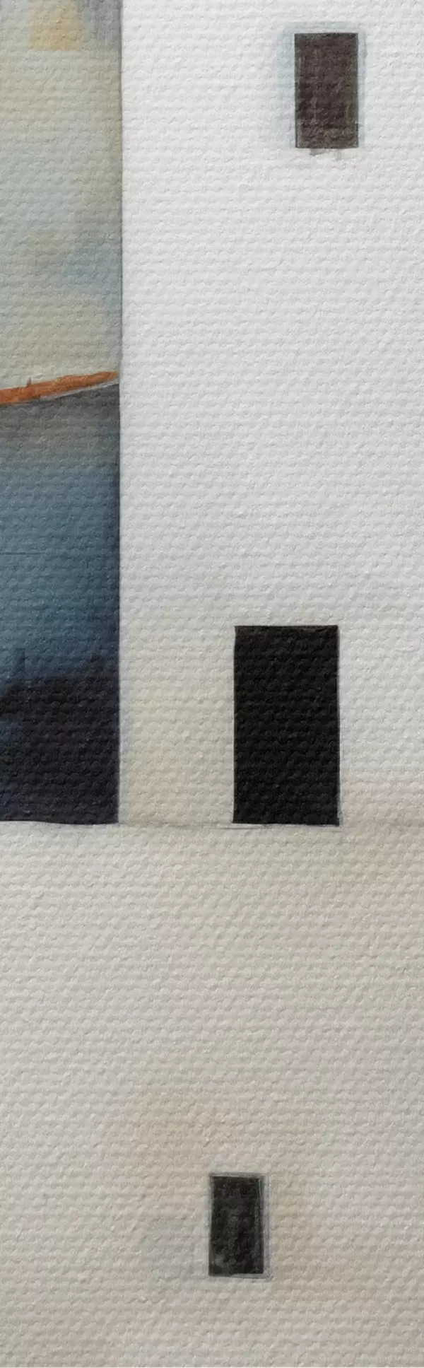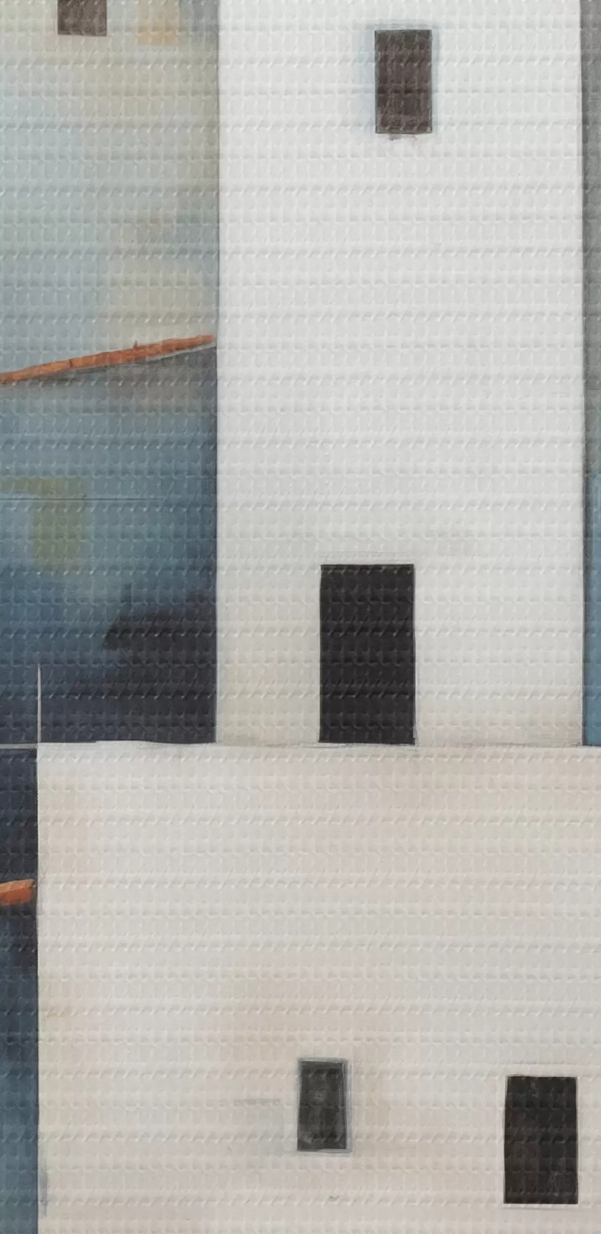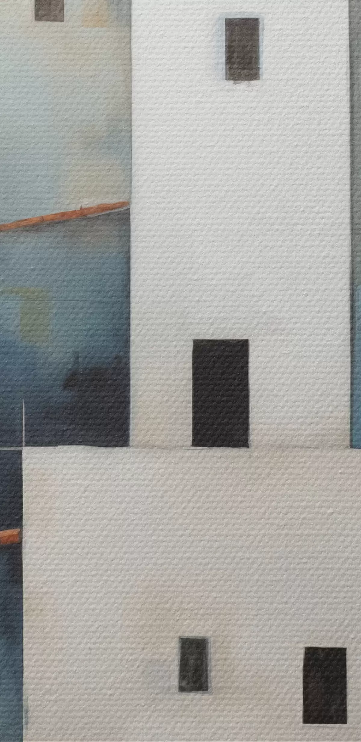 Maalid Valged stiliseeritud majad abstraktsed, punane, oranž, kollane, sinine värv Nr s40531