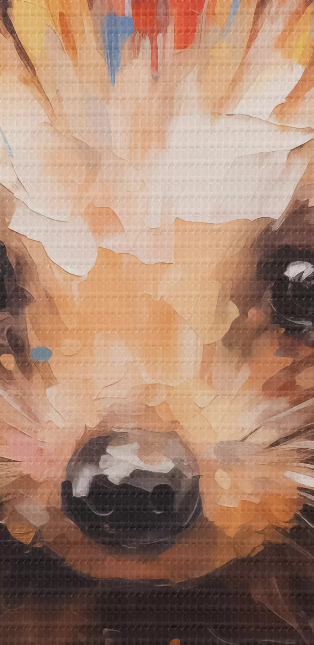 Selle lõuendi peenike niidipunus meenutab professionaalse kunstniku lõuendi pinda.