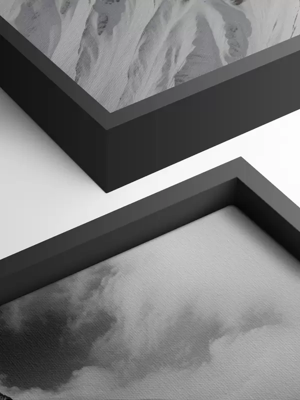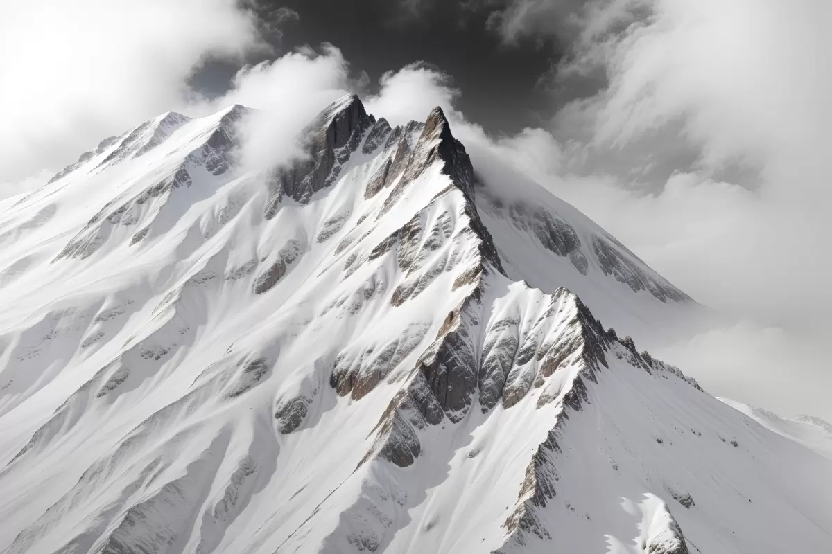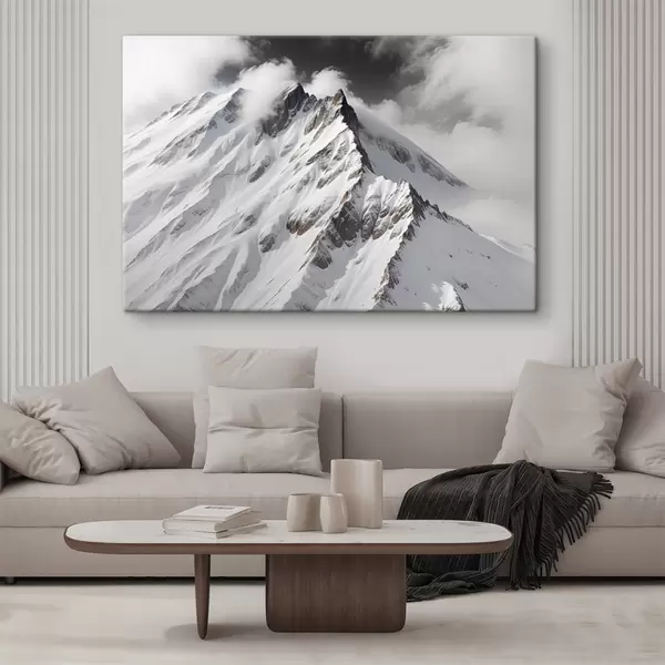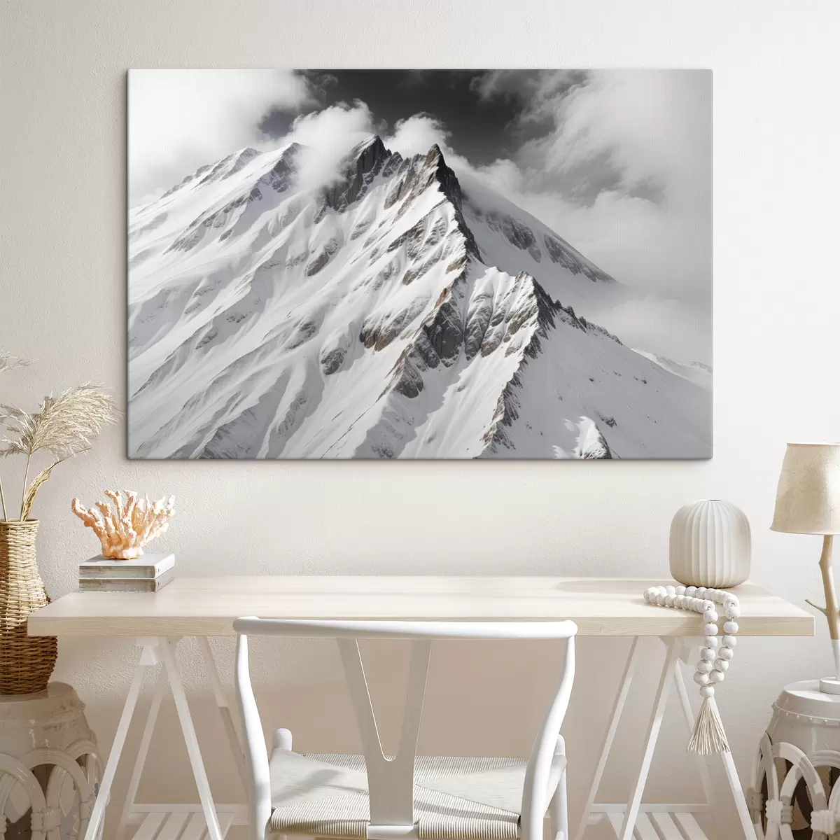 Maalid Lumised mustvalged mäetipud pilves dramaatilisel maastikul Nr s40553