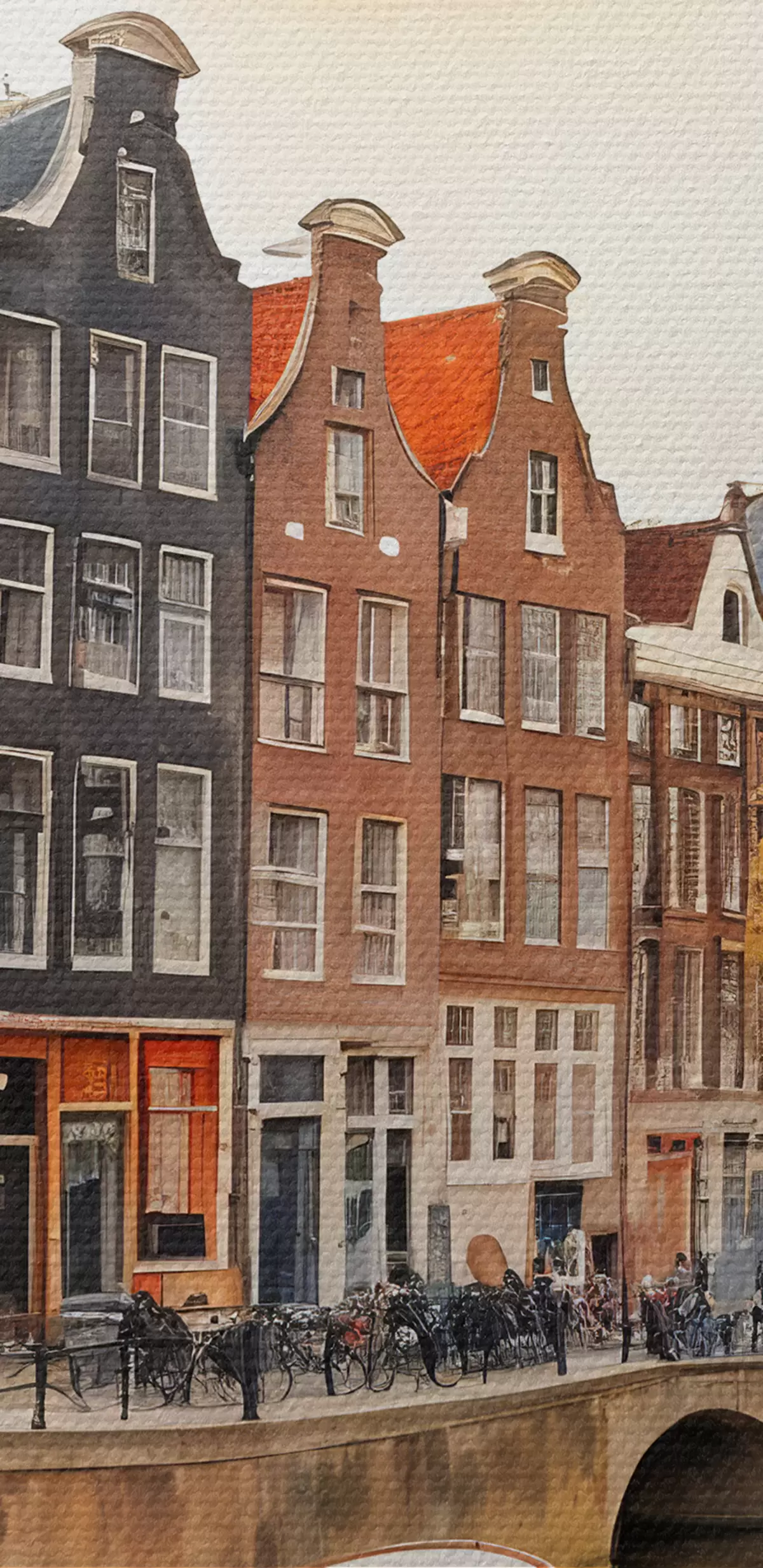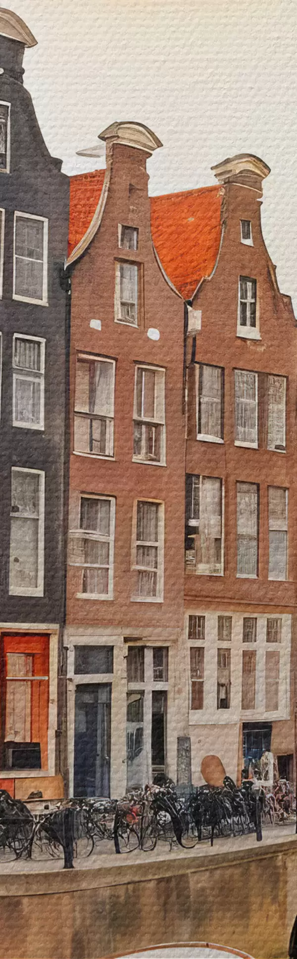 Maalid Amsterdami värvikas akvarelllinnapilt traditsiooniliste Hollandi kanalimajade ja vee peal olevate paatidega Nr s40561