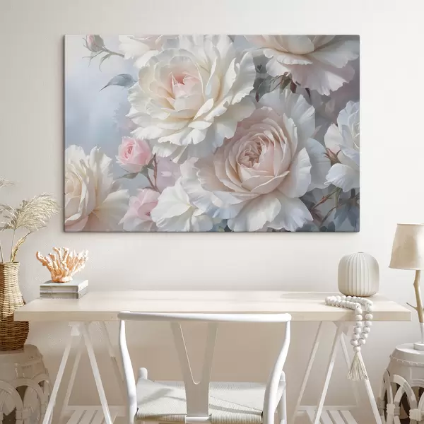Maalid Pehmed, õrnad valged ja roosad roosid hägusa taustaga Nr s40562