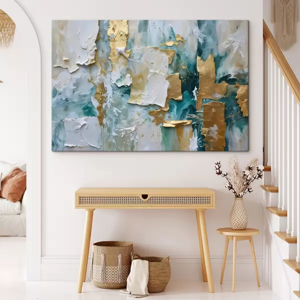 Maalid Valge, sinise ja kollase värvi kihtidega kooriv värv, mis loob abstraktse, tekstureeritud trükise Nr s40577