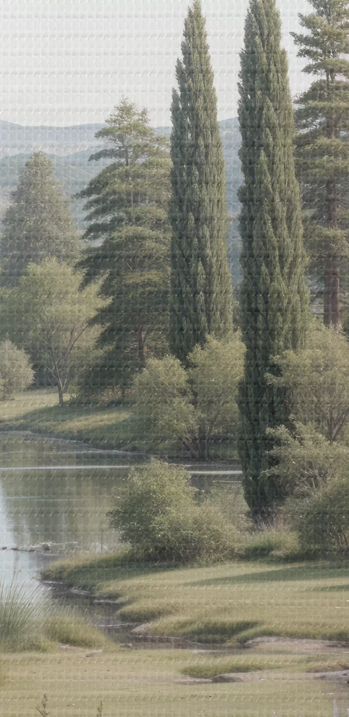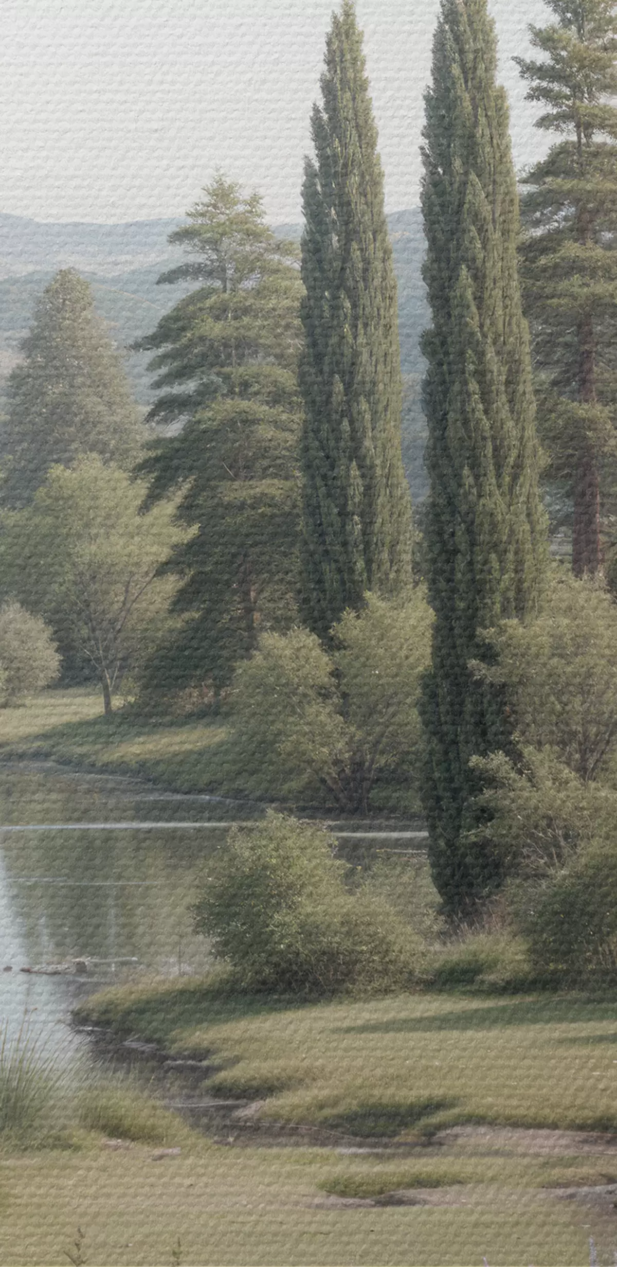 Maalid Rahulik maastik rahuliku järvega, mida ümbritsevad männipuud, küpressid ja muu lopsakas taimestik Nr s40579