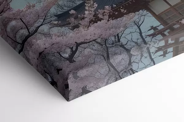 Maalid Traditsiooniline Jaapani pagood, mille taevas on poolkuu ja õitsevad kirsiõiepuud Nr s40586