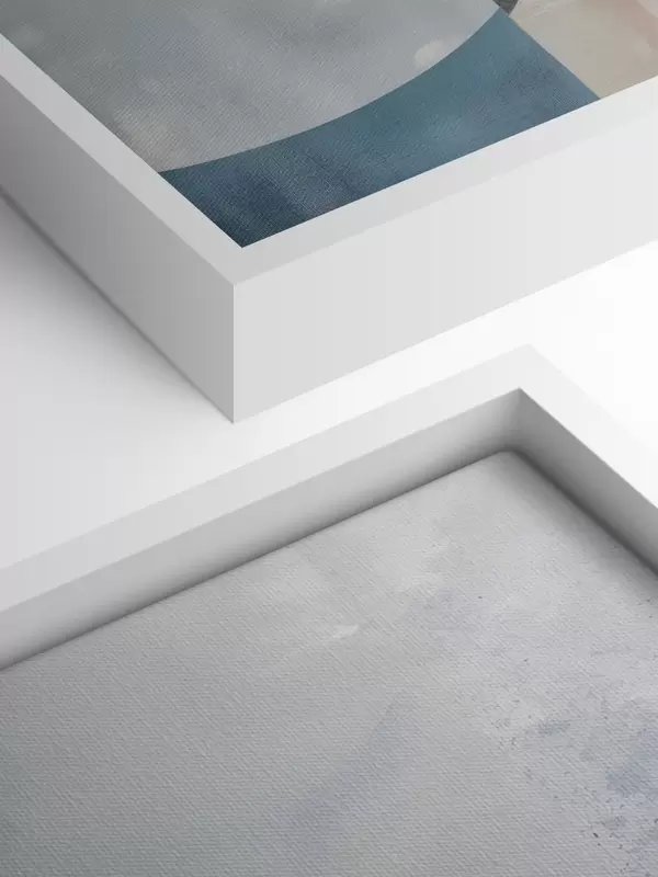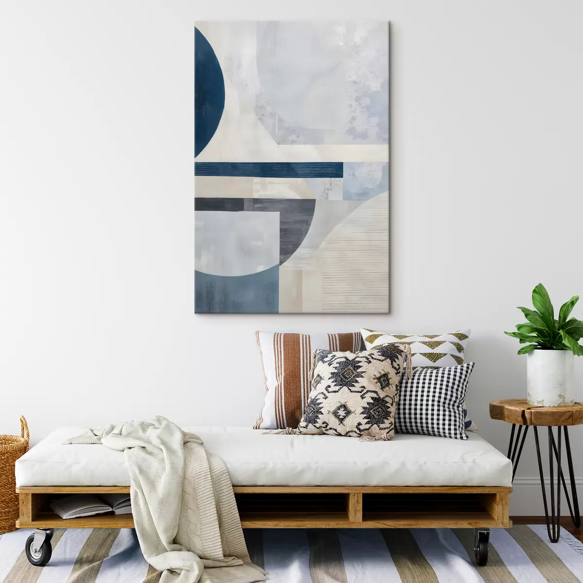 Maalid Minimalistlik abstraktsioon geomeetriliste kujundite ja tekstuuridega sinistes, hallides ja valgetes toonides Nr s40596
