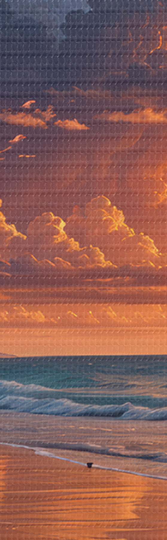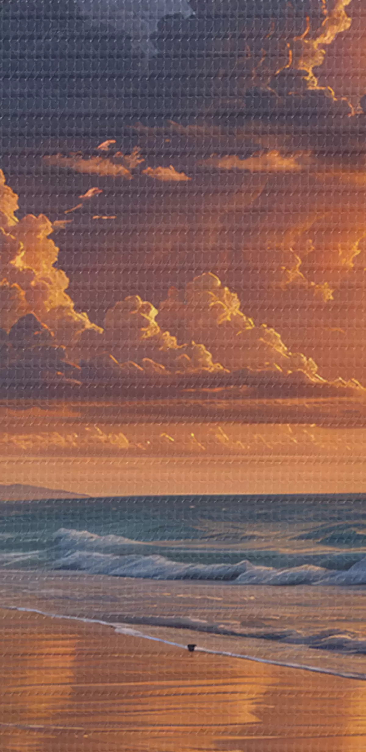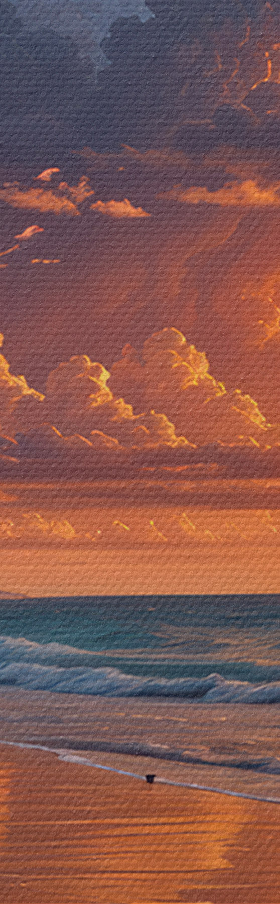 Maalid Dramaatiline päikeseloojang troopilise ranna kohal, kus rahulikus vees peegelduvad elurõõmsad oranžid ja roosad pilved Nr s40599