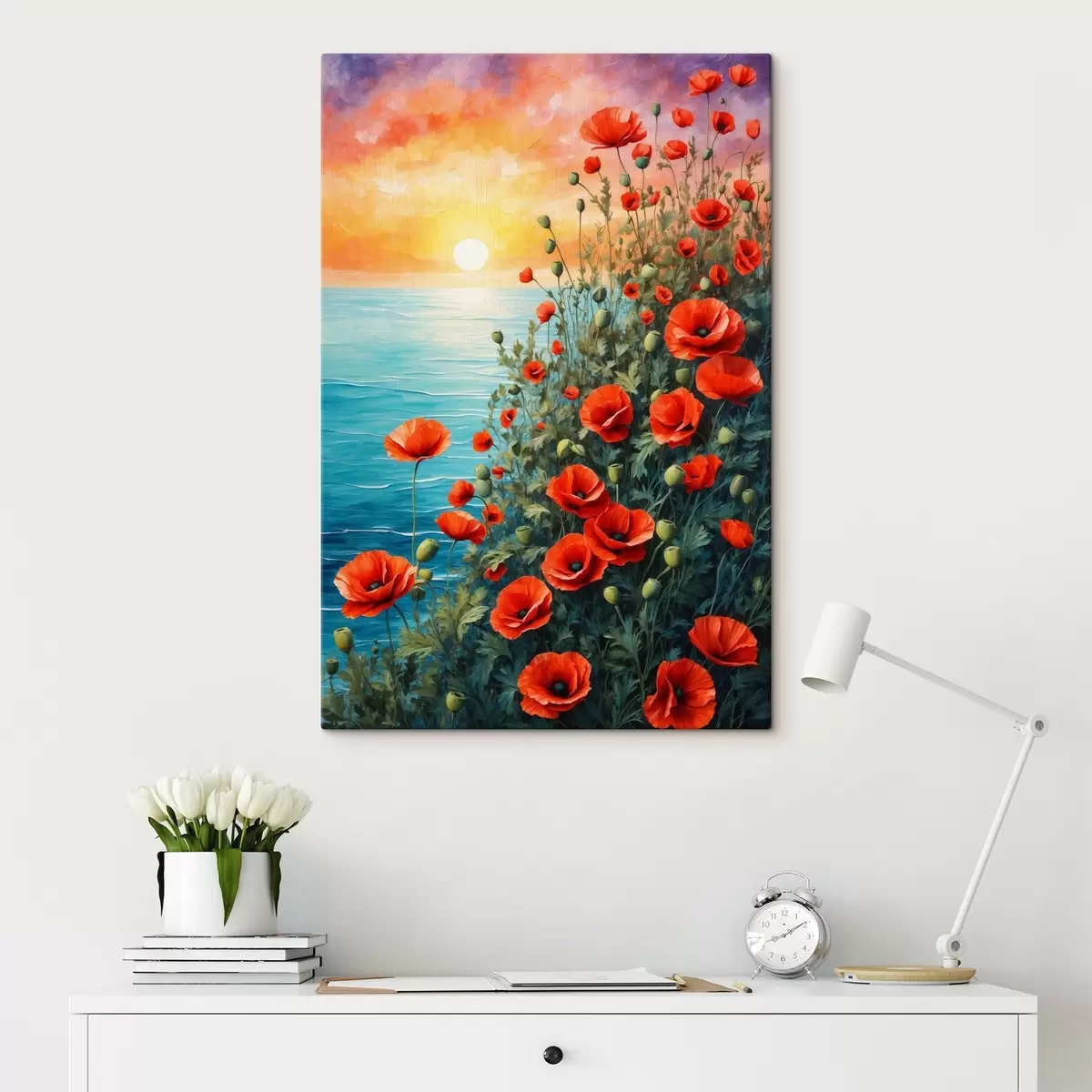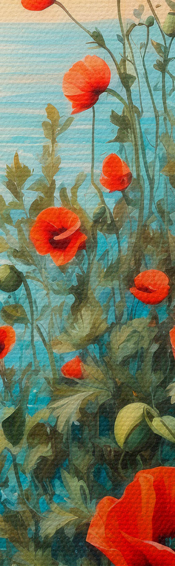 Maalid Õitsevad moonid mere taustal Nr s40637