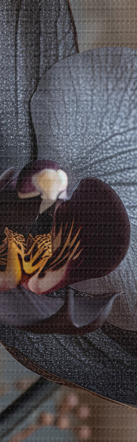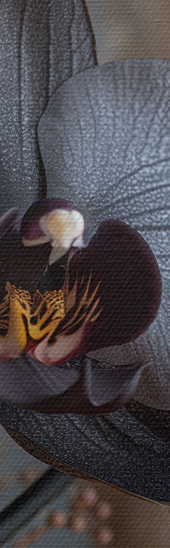 Maalid Elegantne lilleseade mustast orhideest ja teistest kuivatatud lilledest Nr s40661