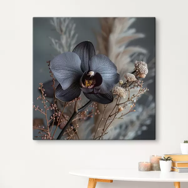 Maalid Elegantne lilleseade mustast orhideest ja teistest kuivatatud lilledest Nr s40661