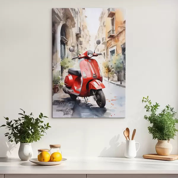 Maalid Punane mootorratas Rooma tänaval akvarellina Nr s40728