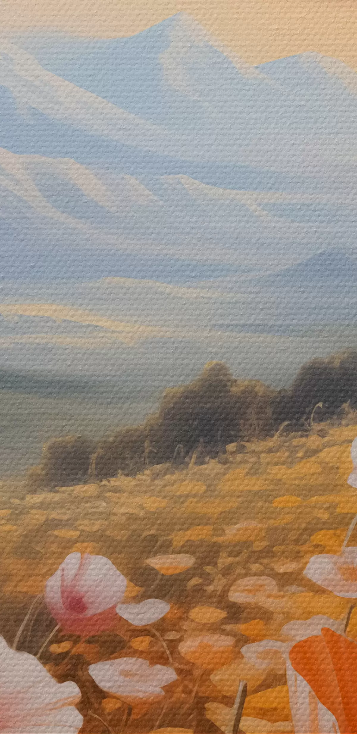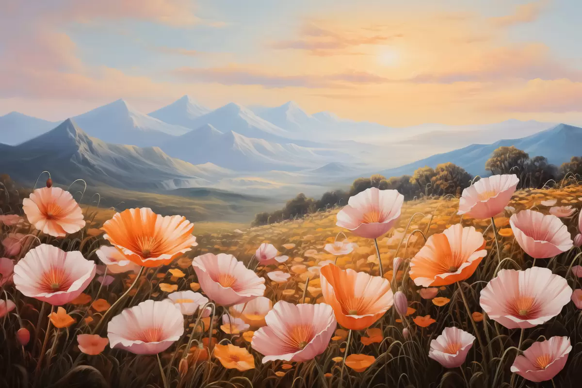 Maalid Unimagunipõld koidikul koos mägedega taustal Nr s40730