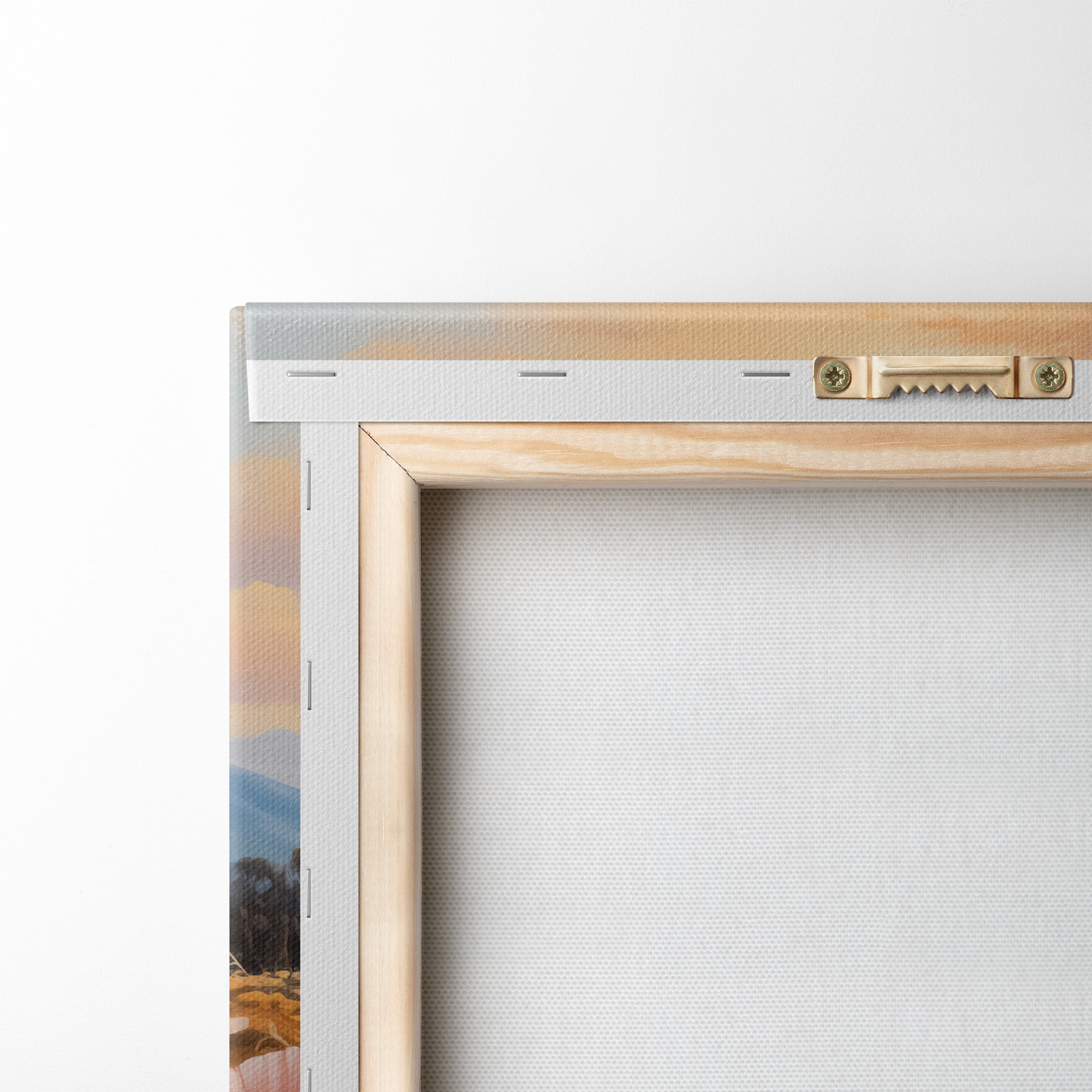 Me müüme pilte kanderaamidel - see on puidust raam, millele lõuend on pingutatud. Seda pilti ei ole vaja raamida, seda võib riputada otse seinale.