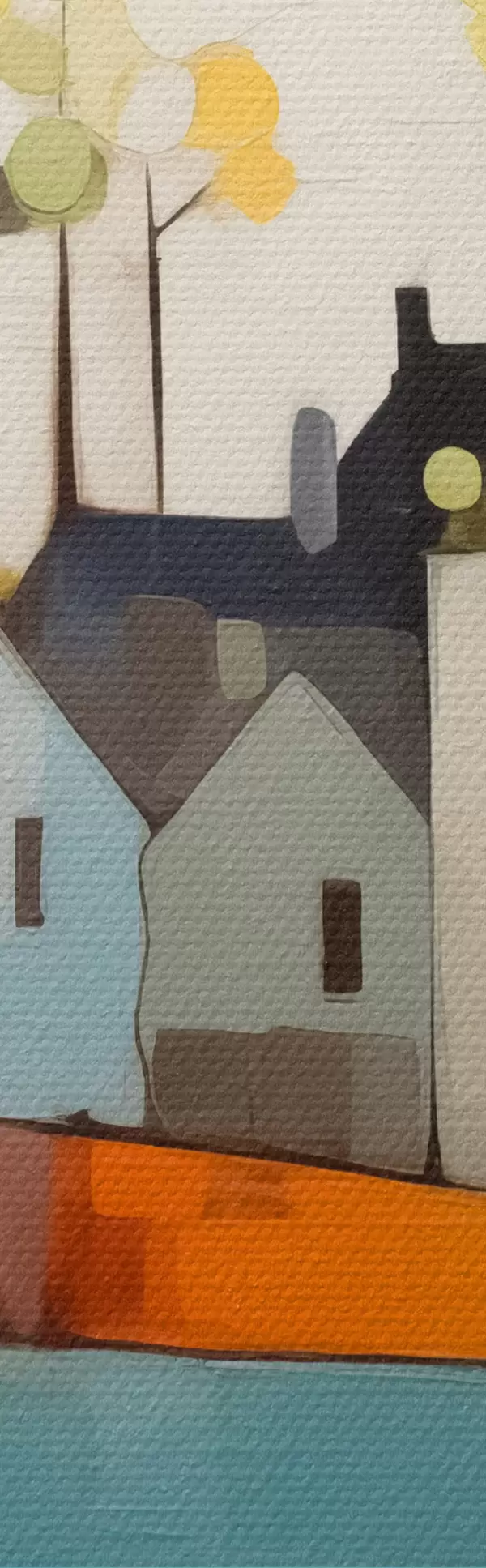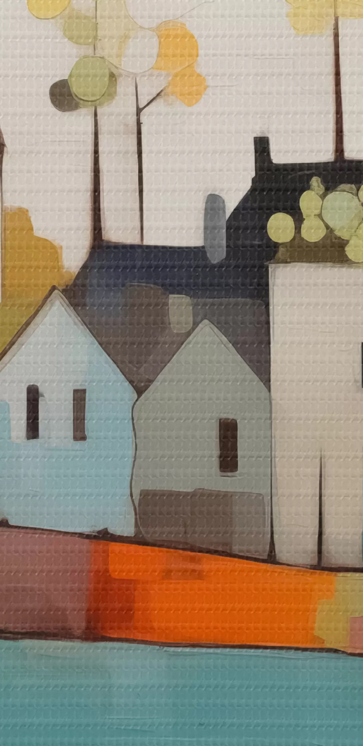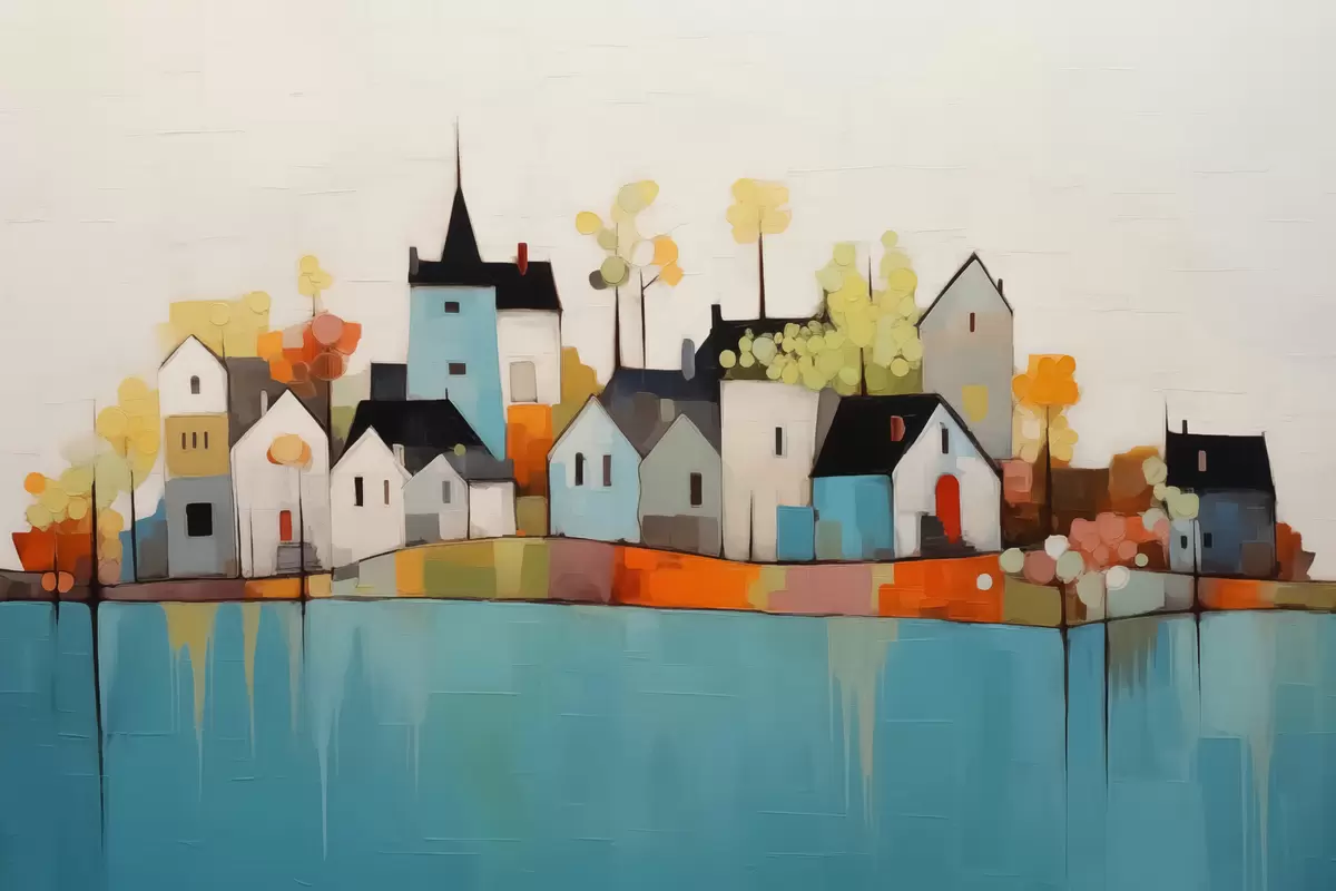 Maalid Abstraktne linn ja majad, sinine, kollane, punane värv Nr s40751