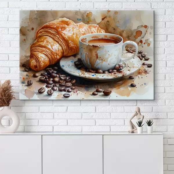 Maalid Croissant, hommik, croissant ja tass kohvi, akvarell Nr s40782