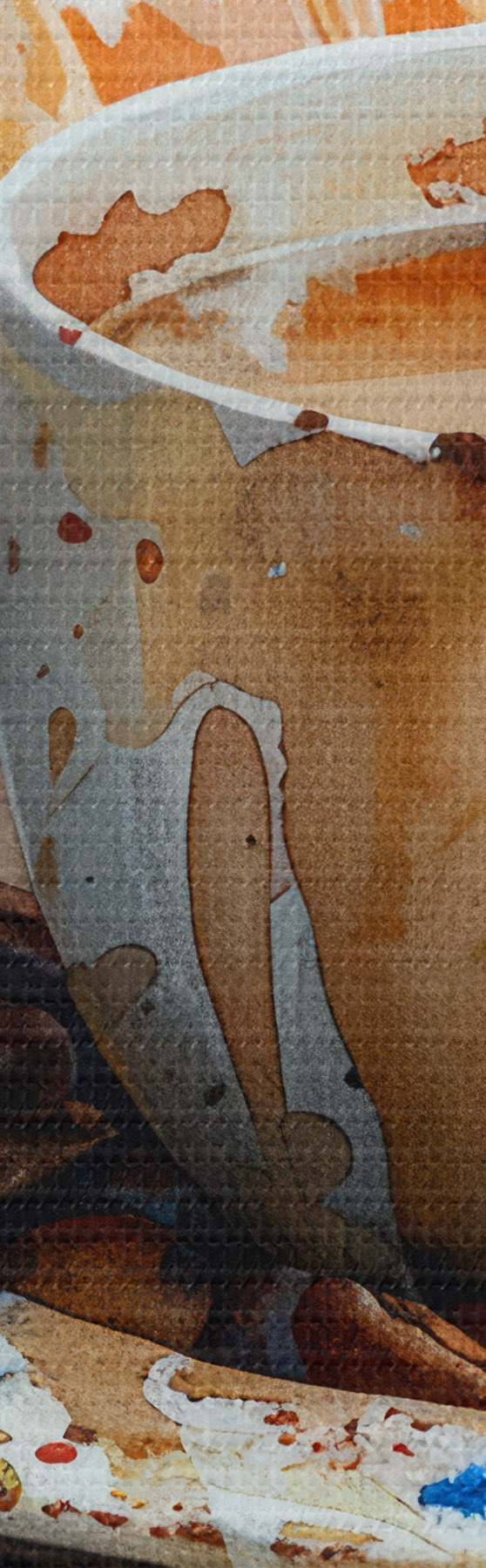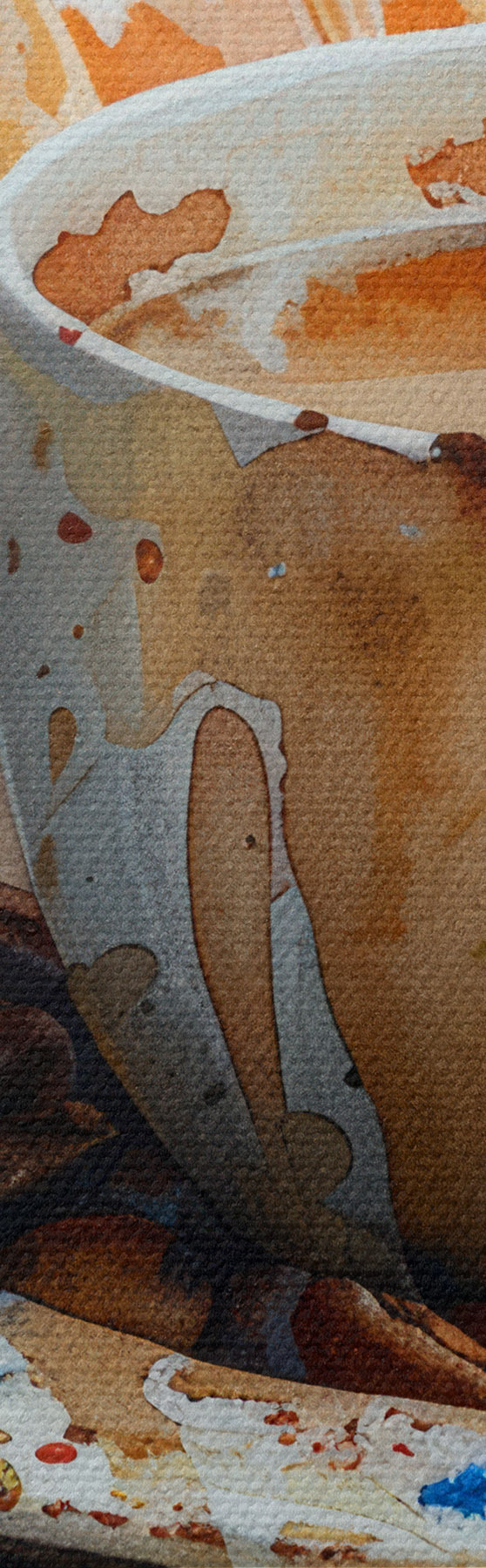 Selle lõuendi peenike niidipunus meenutab professionaalse kunstniku lõuendi pinda.